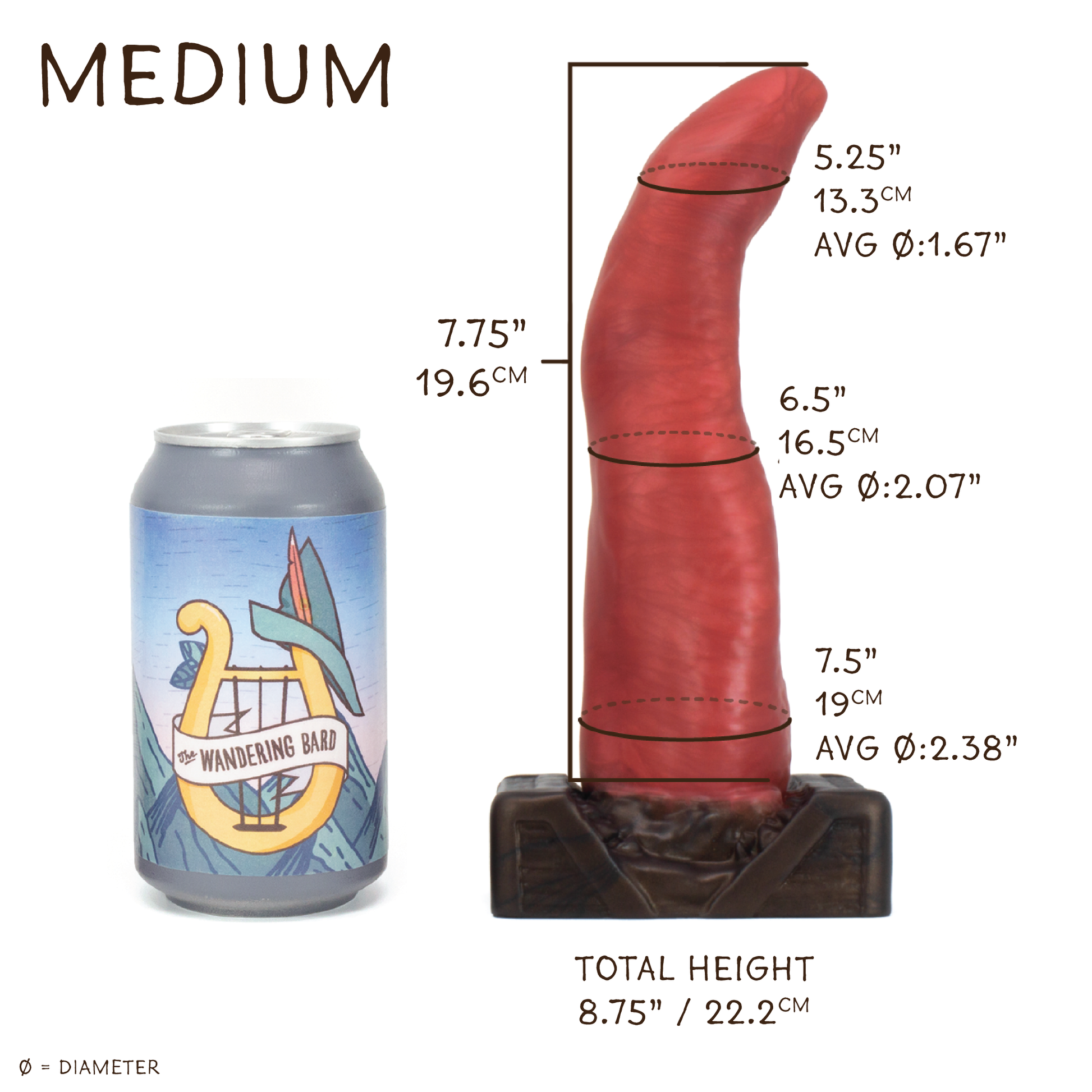 Please Note : This product is made with Near Clear Platinum Cure Silicone, there is an increased chance of bubble marks on the underside of the base, we do not consider this a flop and does not render the toy unsafe. Discoloration may be more obvious than standard Platinum Cure. Oil Based lubes and bodily fluids may stain, be sure to clean before and after every use with mild unscented soap.