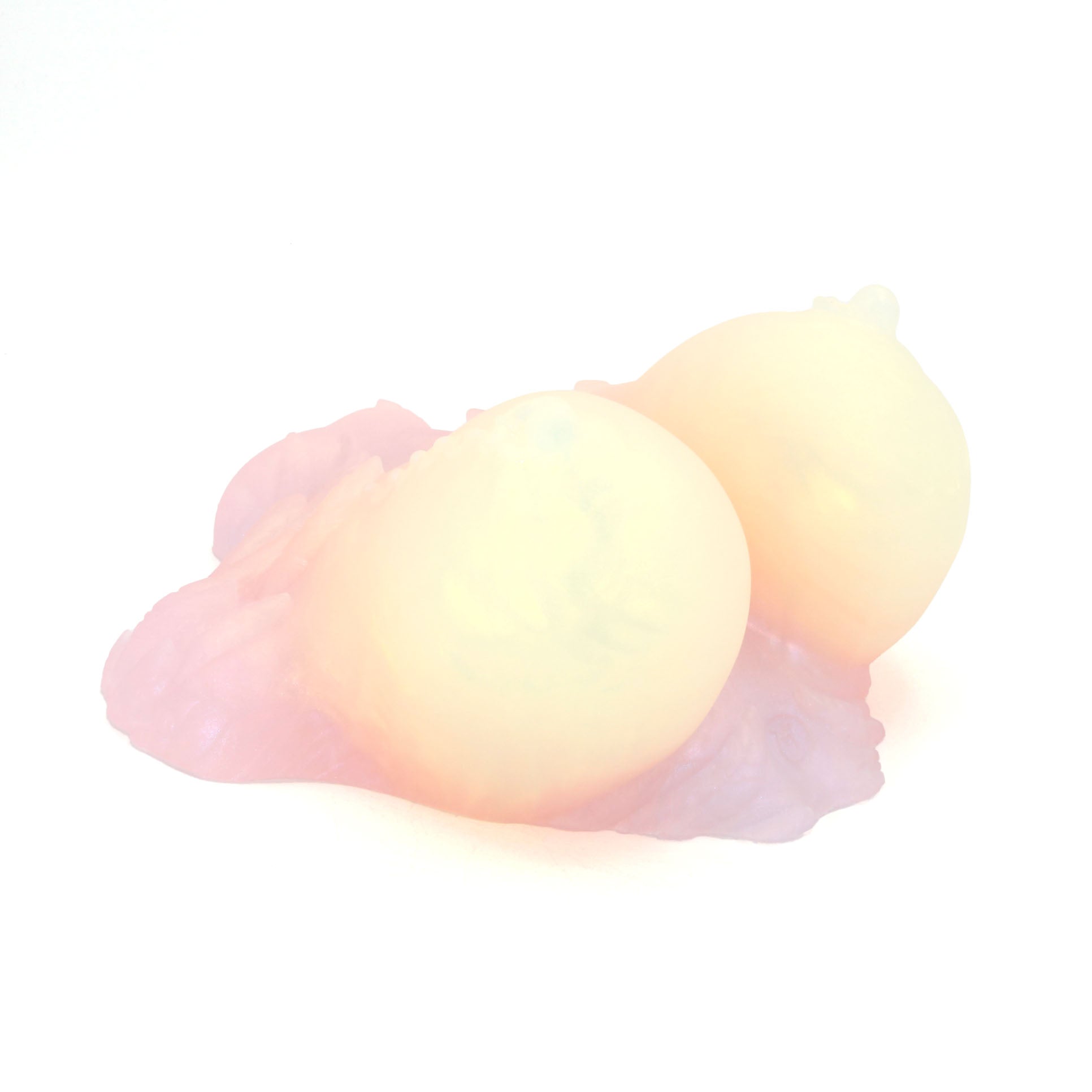 Please Note : This product is made with Near Clear Platinum Cure Silicone, there is an increased chance of bubble marks on the underside of the base, we do not consider this a flop and does not render the toy unsafe. Discoloration may be more obvious than standard Platinum Cure. Oil Based lubes and bodily fluids may stain, be sure to clean before and after every use with mild unscented soap.