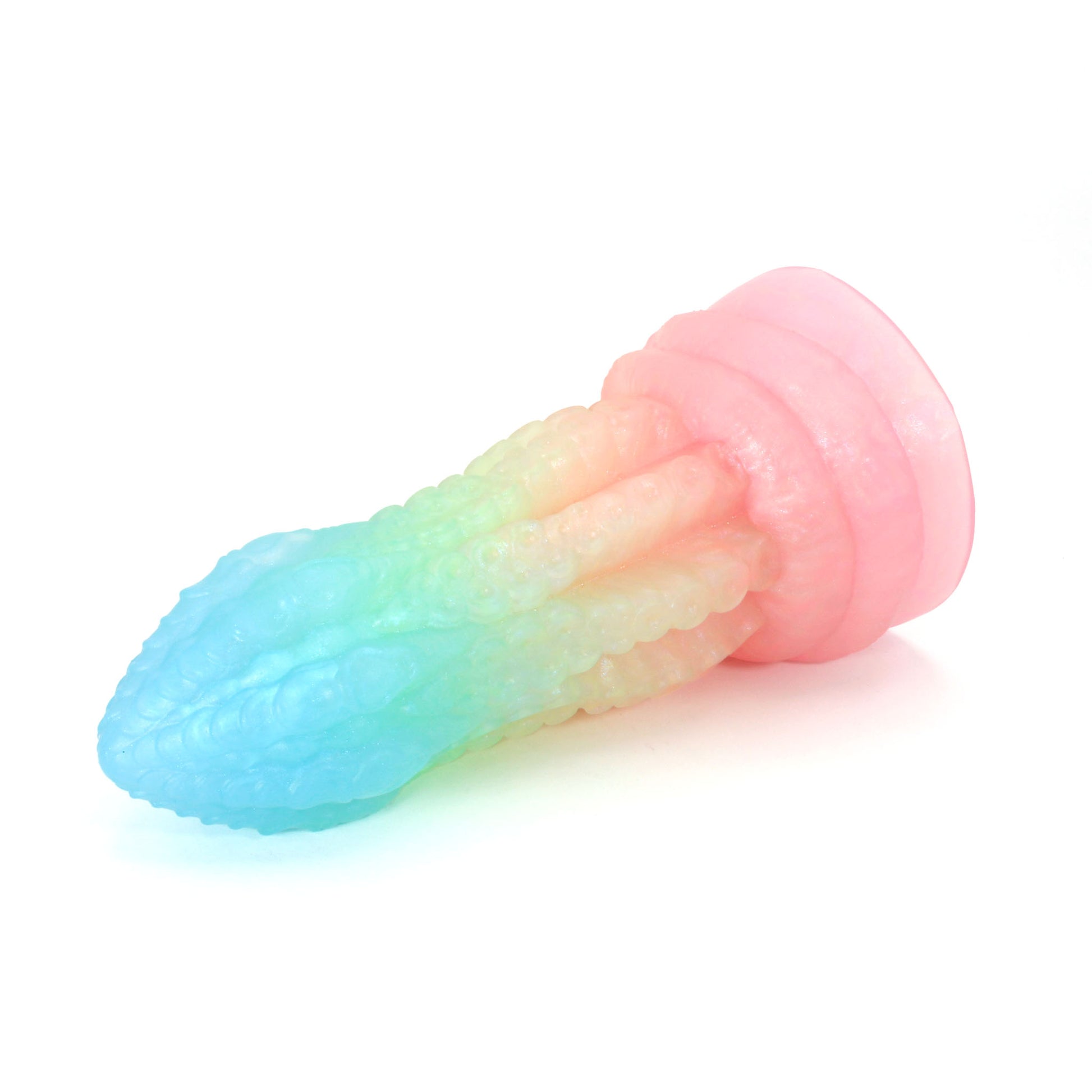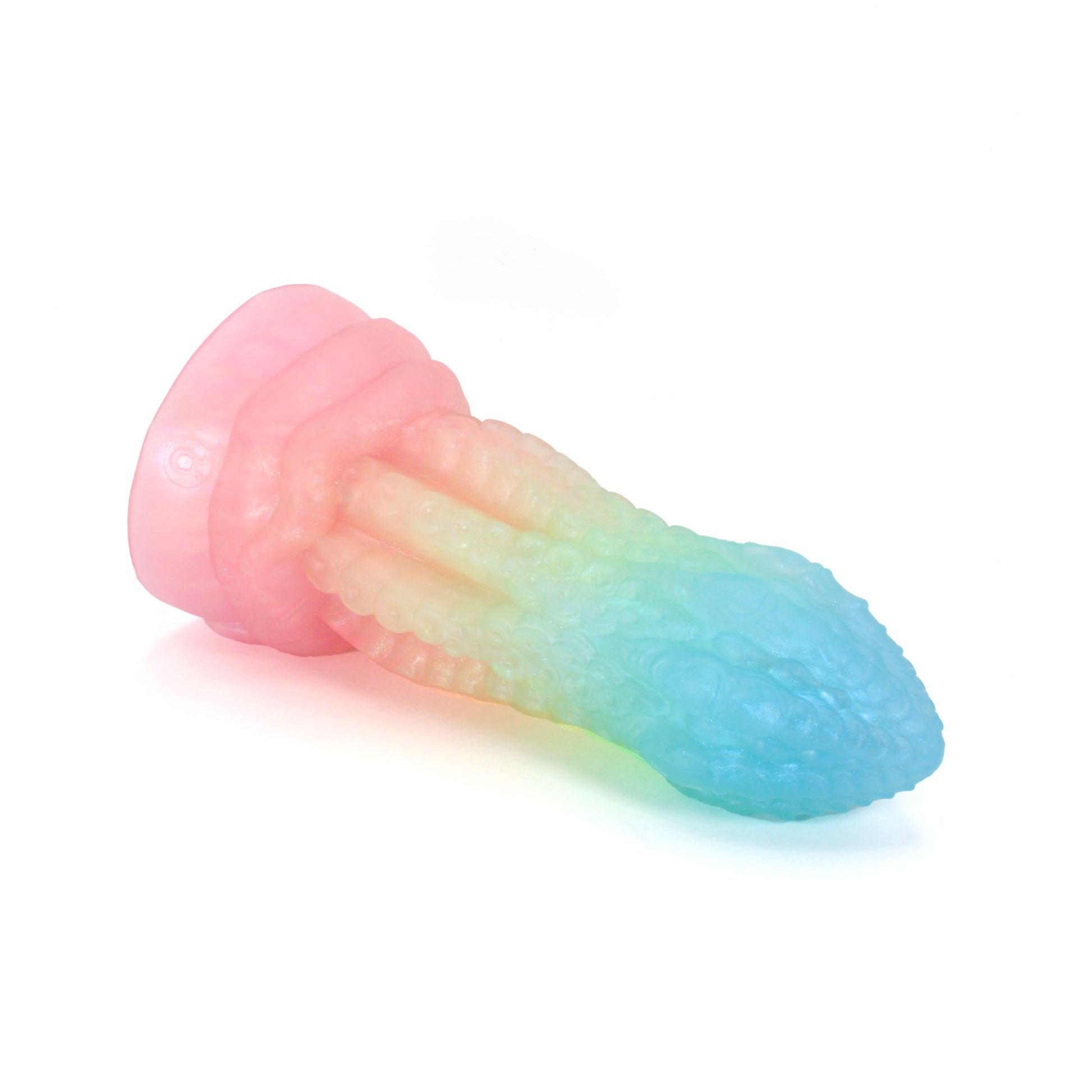 Please Note : This product is made with Near Clear Platinum Cure Silicone, there is an increased chance of bubble marks on the underside of the base, we do not consider this a flop and does not render the toy unsafe. Discoloration may be more obvious than standard Platinum Cure. Oil Based lubes and bodily fluids may stain, be sure to clean before and after every use with mild unscented soap.