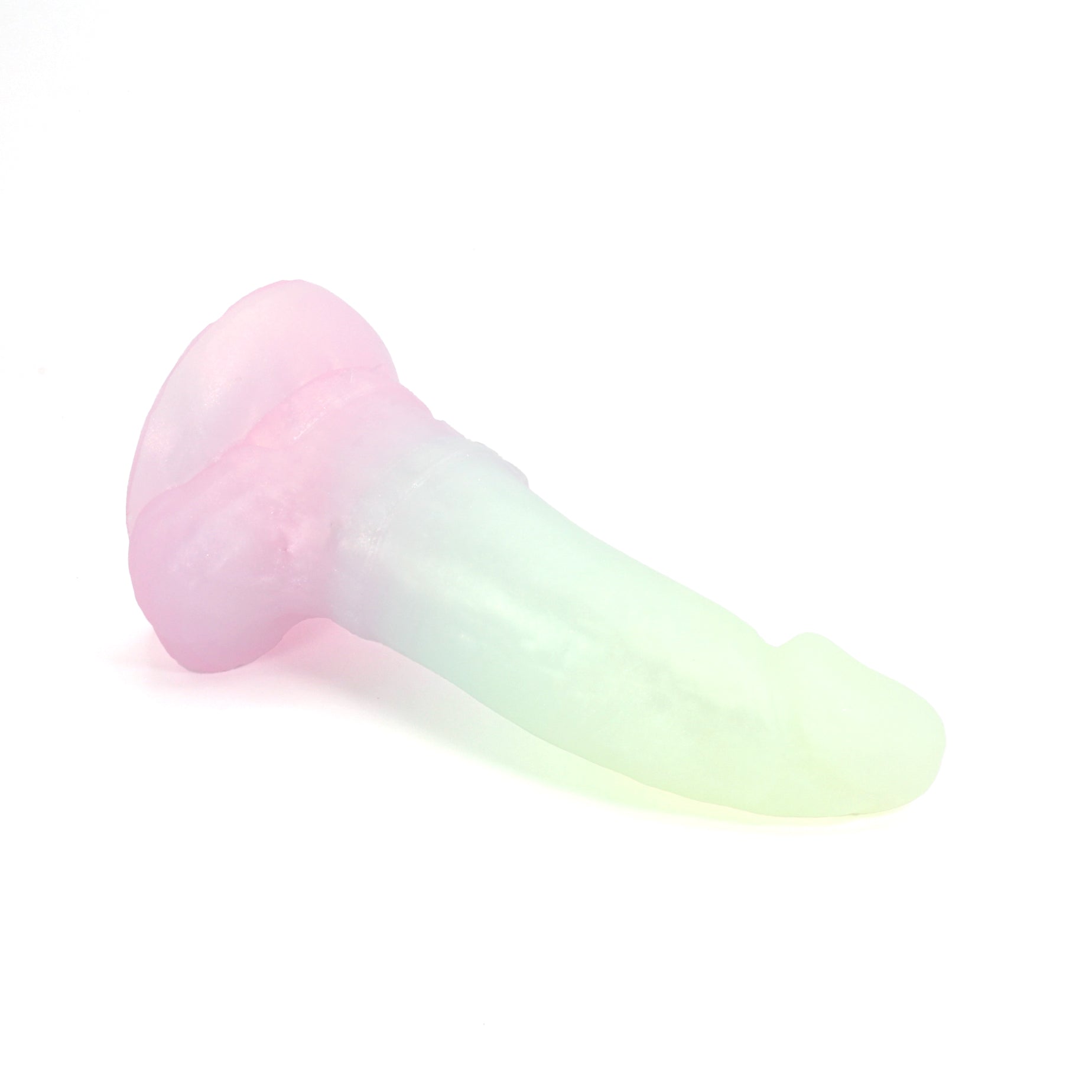 Please Note : This product is made with Near Clear Platinum Cure Silicone, there is an increased chance of bubble marks on the underside of the base, we do not consider this a flop and does not render the toy unsafe. Discoloration may be more obvious than standard Platinum Cure. Oil Based lubes and bodily fluids may stain, be sure to clean before and after every use with mild unscented soap.