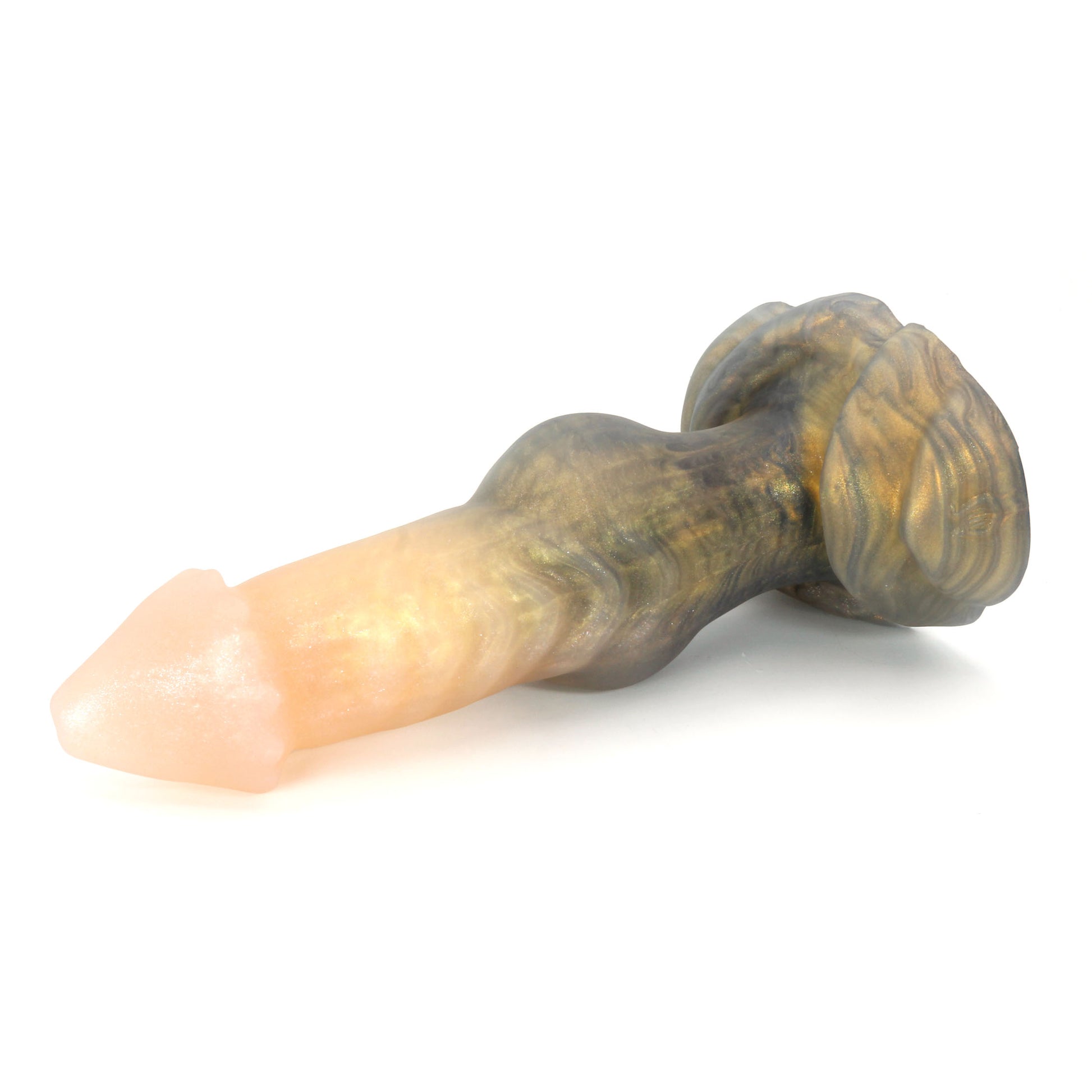 Please Note : This product is made with Near Clear Platinum Cure Silicone, there is an increased chance of bubble marks on the underside of the base, we do not consider this a flop and does not render the toy unsafe. Discoloration may be more obvious than standard Platinum Cure. Oil Based lubes and bodily fluids may stain, be sure to clean before and after every use with mild unscented soap.