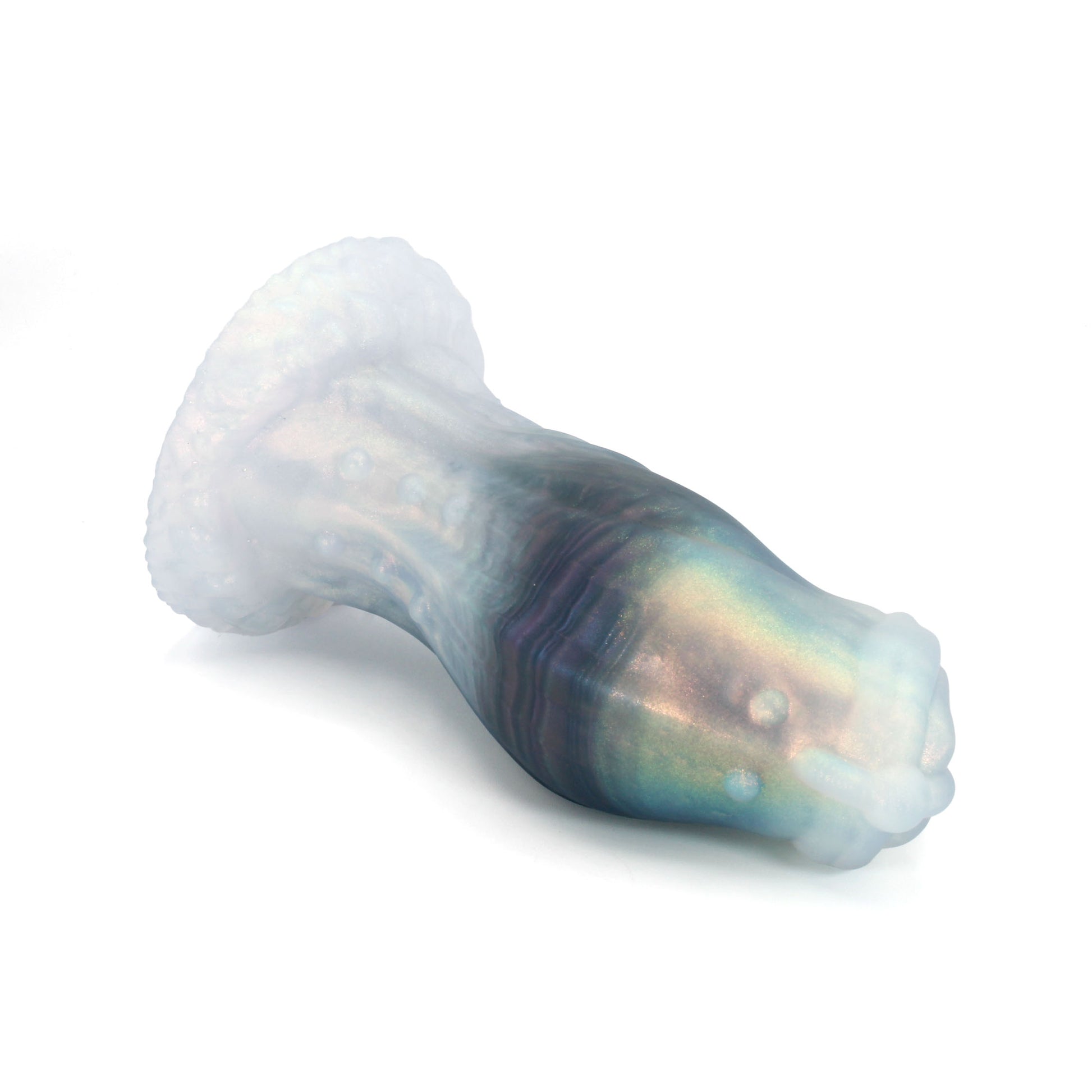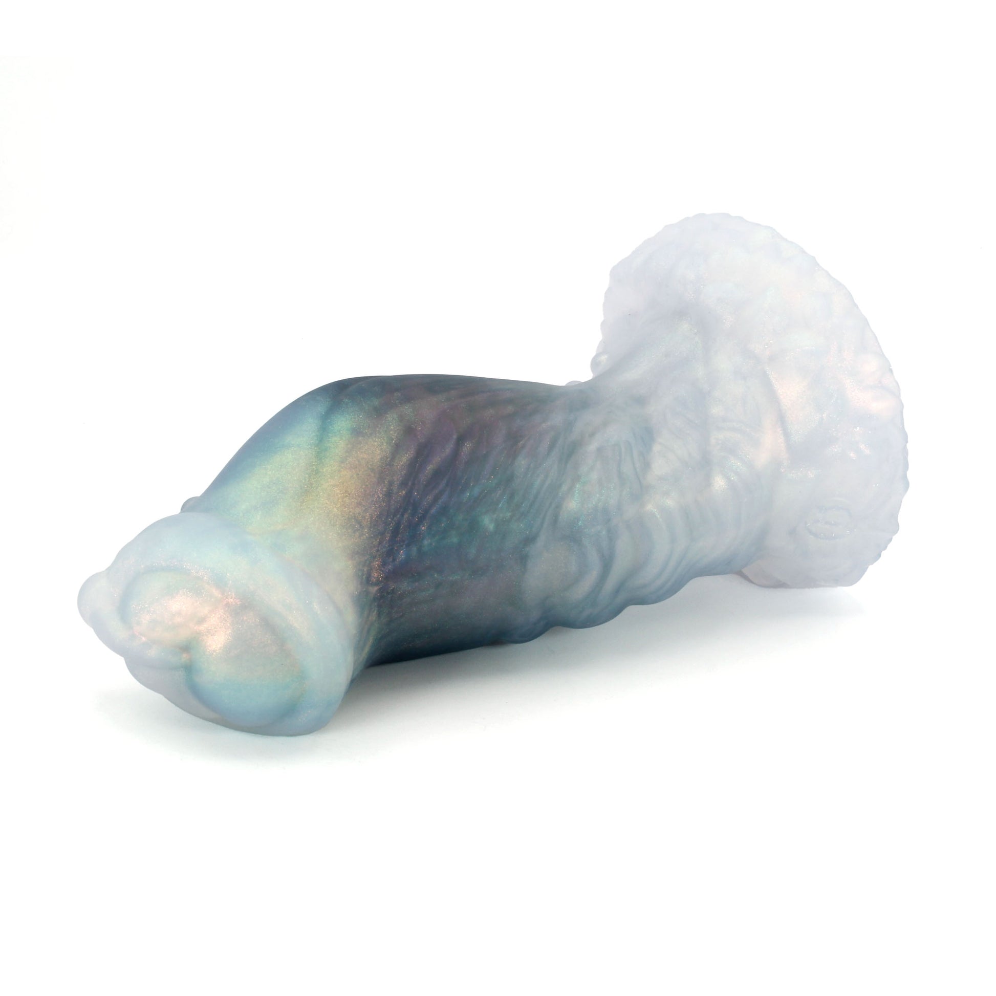 Please Note : This product is made with Near Clear Platinum Cure Silicone, there is an increased chance of bubble marks on the underside of the base, we do not consider this a flop and does not render the toy unsafe. Discoloration may be more obvious than standard Platinum Cure. Oil Based lubes and bodily fluids may stain, be sure to clean before and after every use with mild unscented soap.