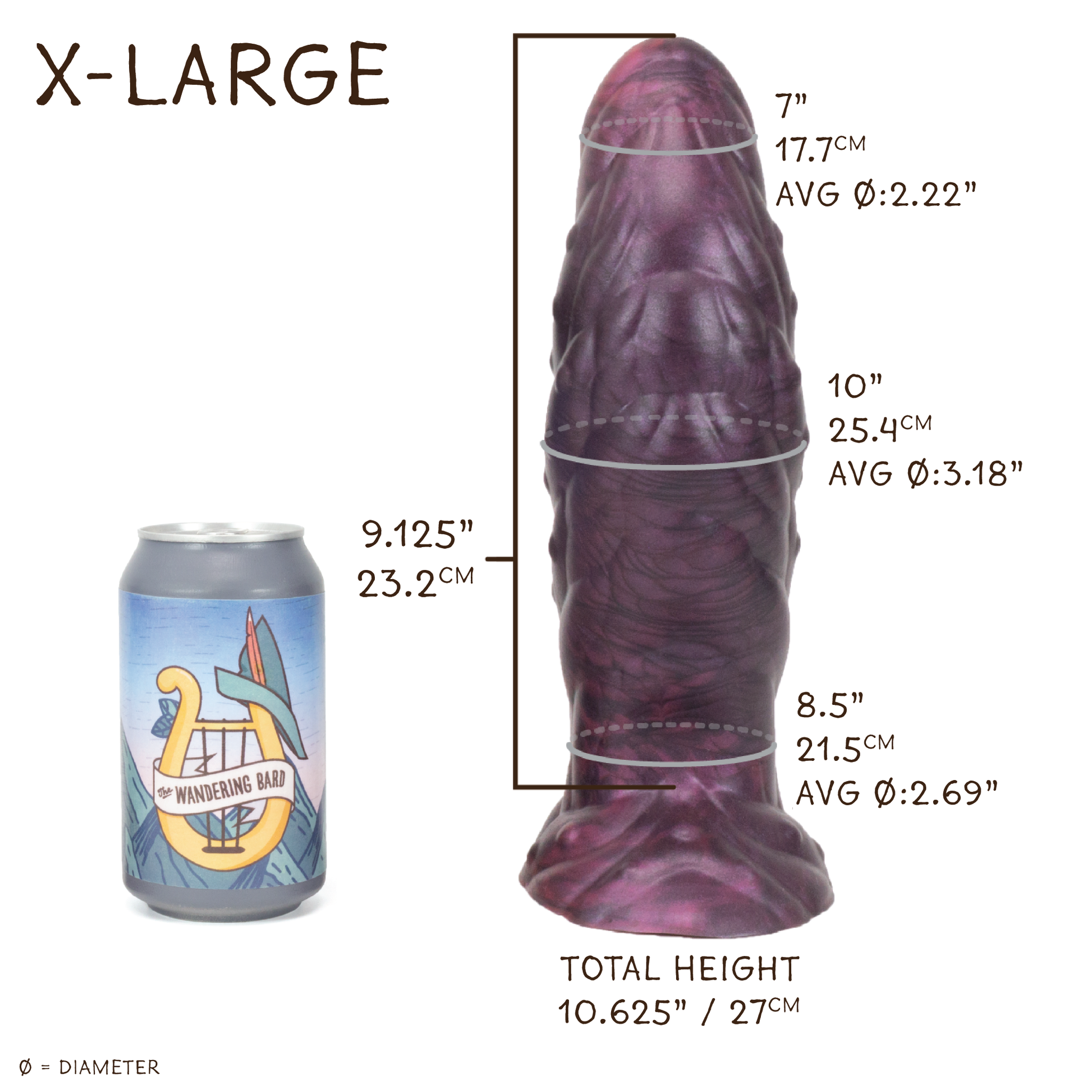 Head Base Circumference: 7" / 17.7cm ; Avg Diameter: 2.22"