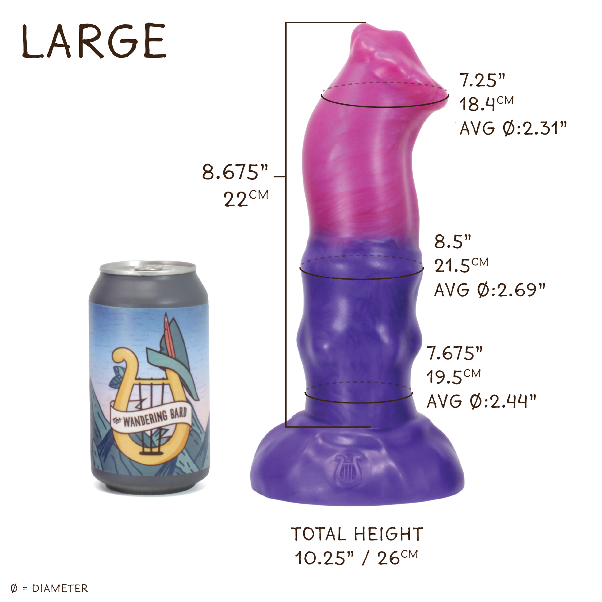 Please Note : This product is made with Near Clear Platinum Cure Silicone, there is an increased chance of bubble marks on the underside of the base, we do not consider this a flop and does not render the toy unsafe. Discoloration may be more obvious than standard Platinum Cure. Oil Based lubes and bodily fluids may stain, be sure to clean before and after every use with mild unscented soap.