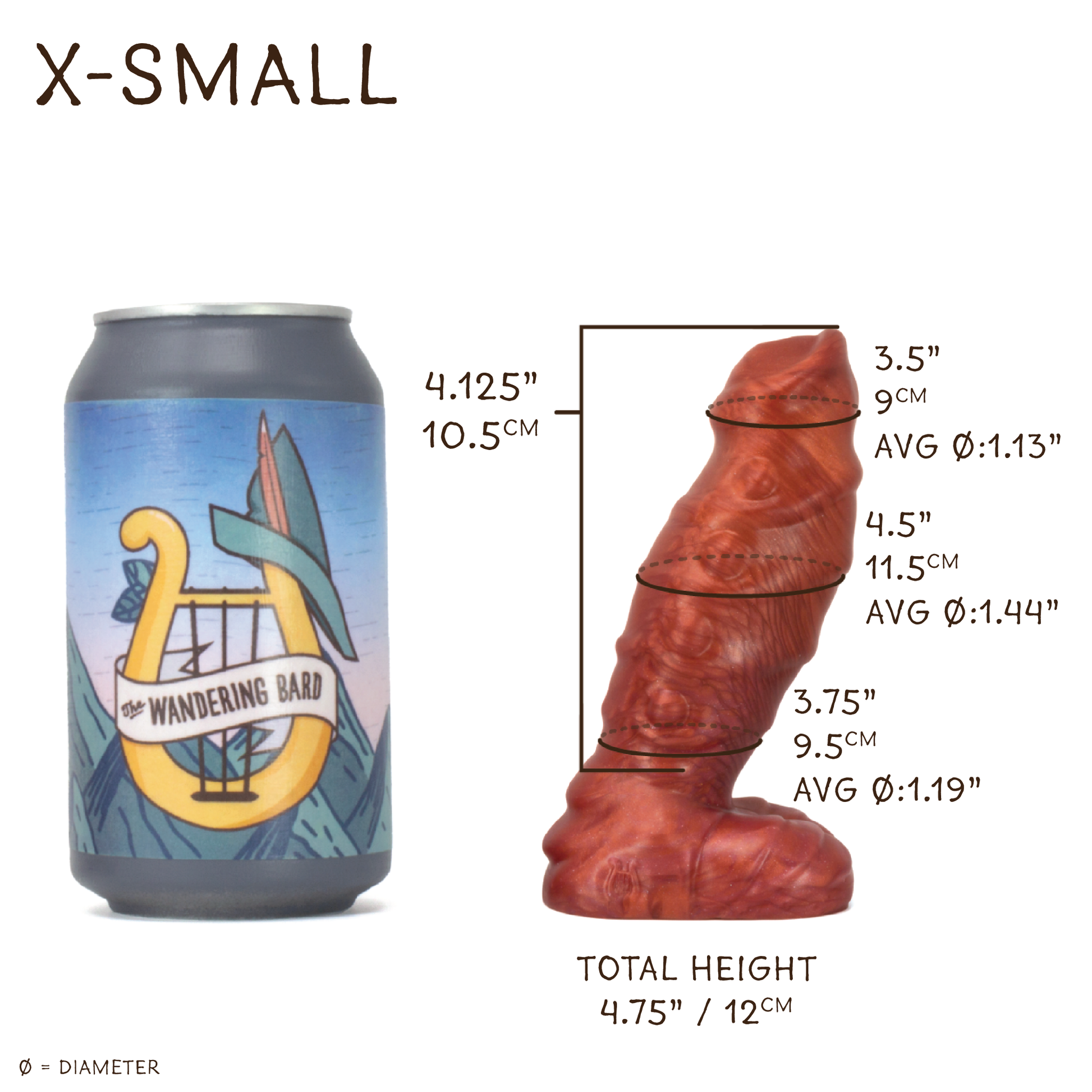 Above Base Circumference: 3.75" / 9.5cm ; Avg Diameter: 1.19"