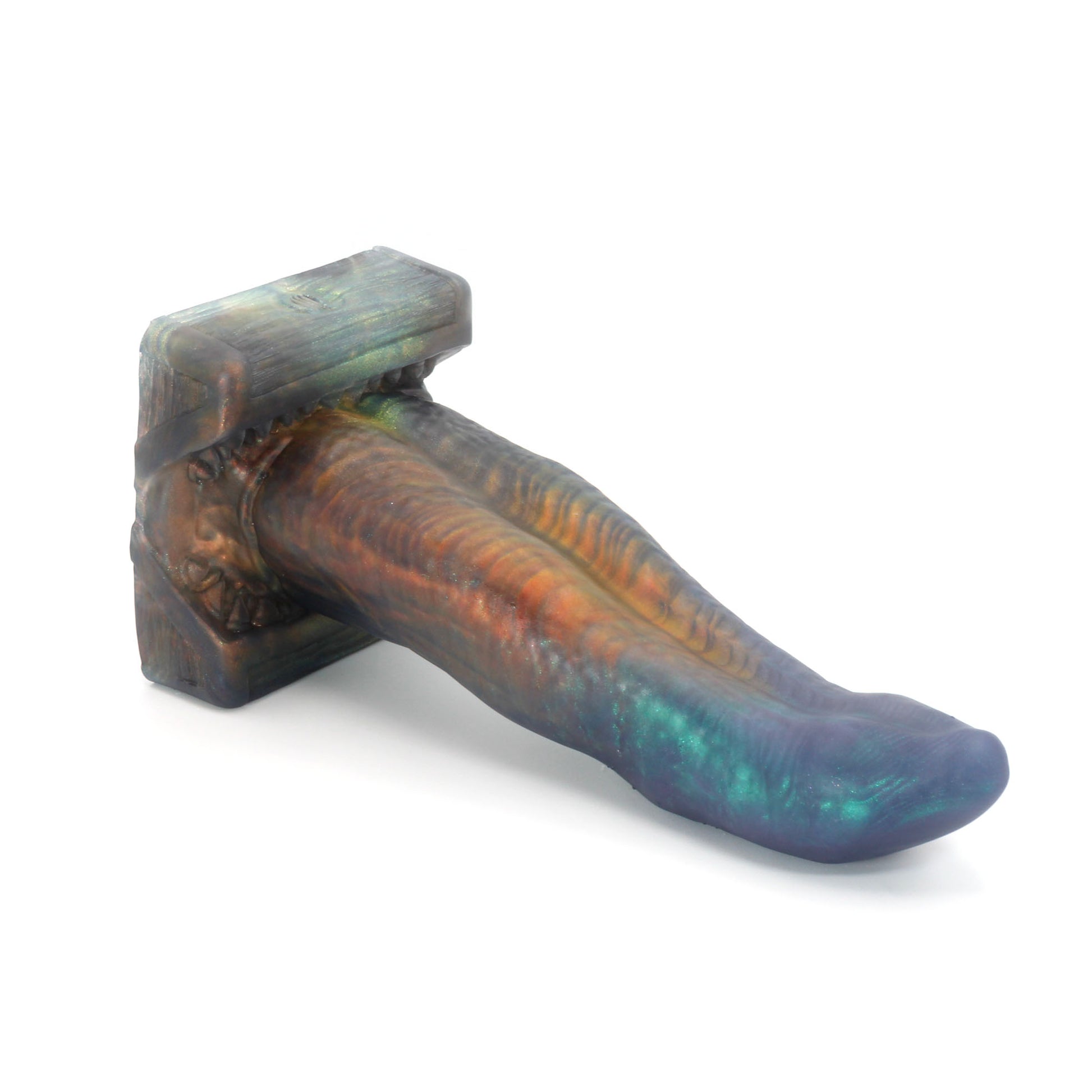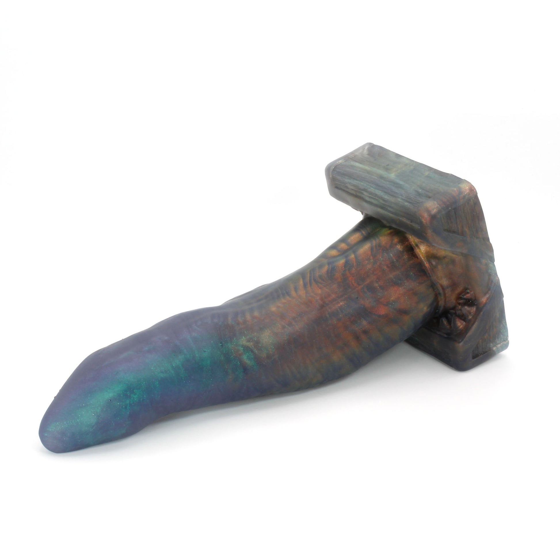 Please Note : This product is made with Near Clear Platinum Cure Silicone, there is an increased chance of bubble marks on the underside of the base, we do not consider this a flop and does not render the toy unsafe. Discoloration may be more obvious than standard Platinum Cure. Oil Based lubes and bodily fluids may stain, be sure to clean before and after every use with mild unscented soap.
