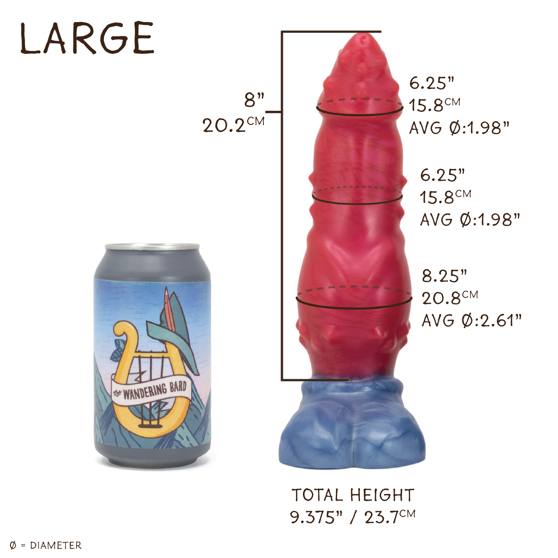 Please Note : This product is made with Near Clear Platinum Cure Silicone, there is an increased chance of bubble marks on the underside of the base, we do not consider this a flop and does not render the toy unsafe. Discoloration may be more obvious than standard Platinum Cure. Oil Based lubes and bodily fluids may stain, be sure to clean before and after every use with mild unscented soap.