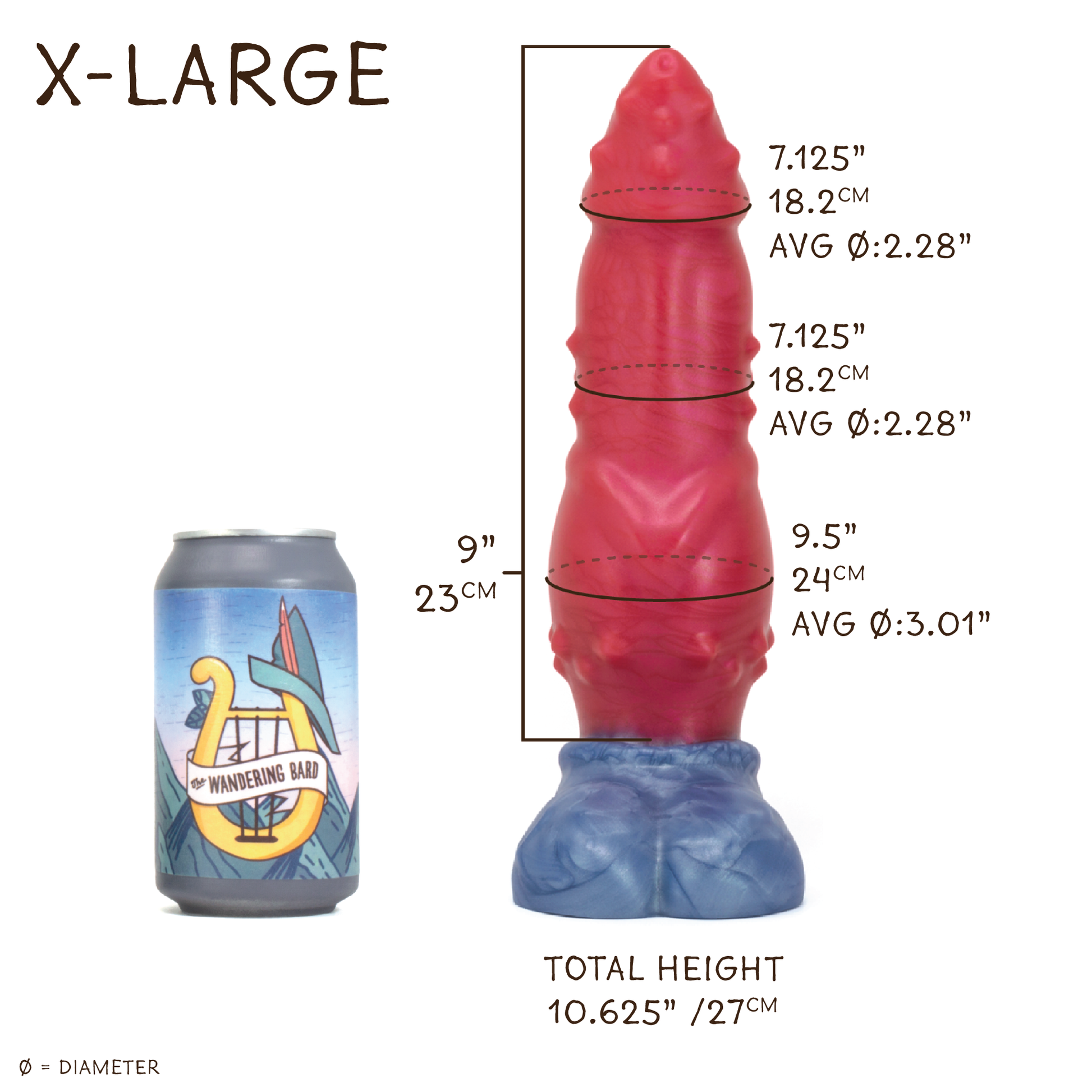 Head Base Circumference: 7.125" / 18.2cm ; Avg Diameter: 2.28" Mid Shaft Circumference: 7.125" / 18.2cm ; Avg Diameter: 2.28" Mid Knot Circumference: 9.5" / 24cm ; Avg Diameter: 3.01" Below Knot Circumference: 7" / 17.7cm ; Avg Diameter: 2.23" Usable Length: 9" / 23cm Total Length: 10.625" / 27cm