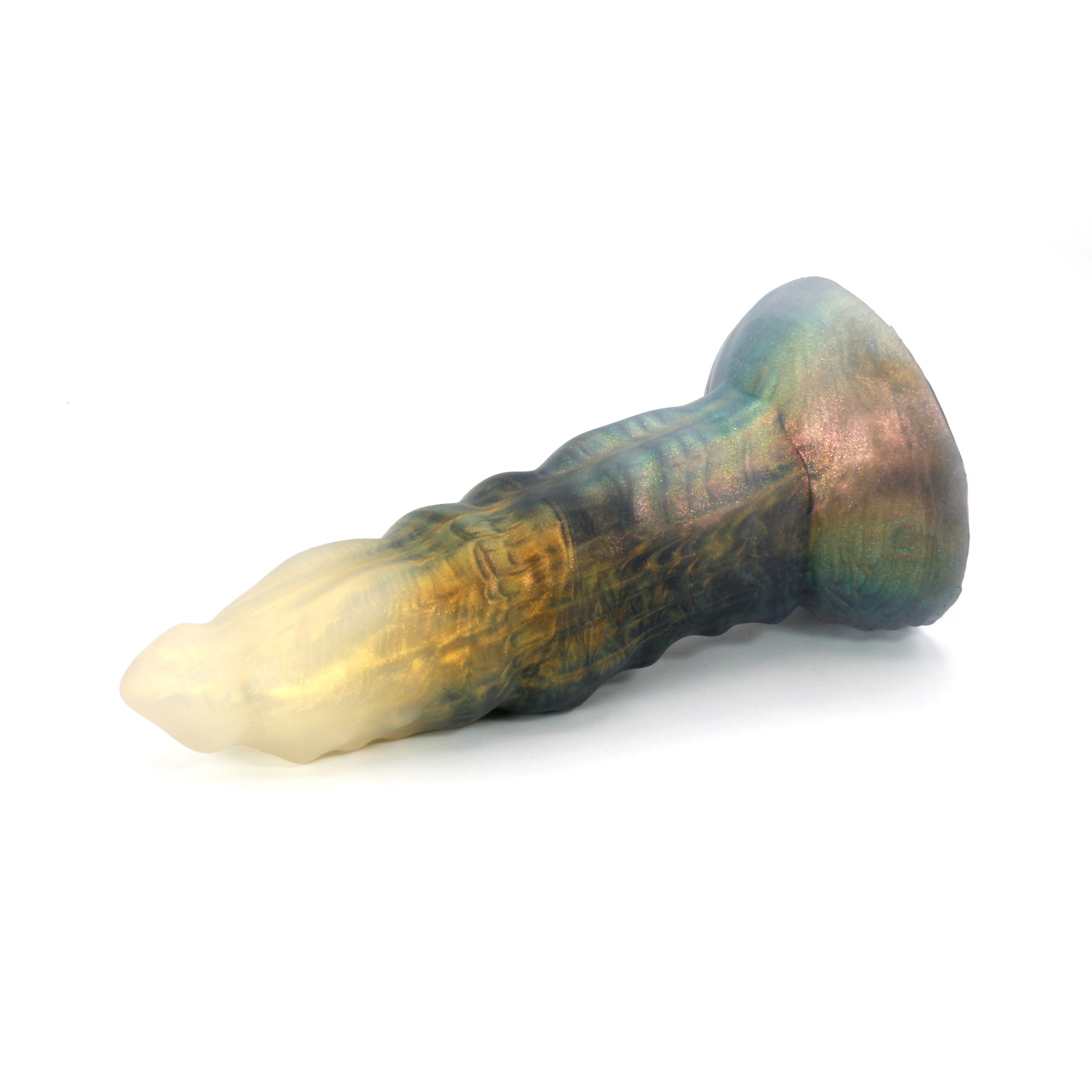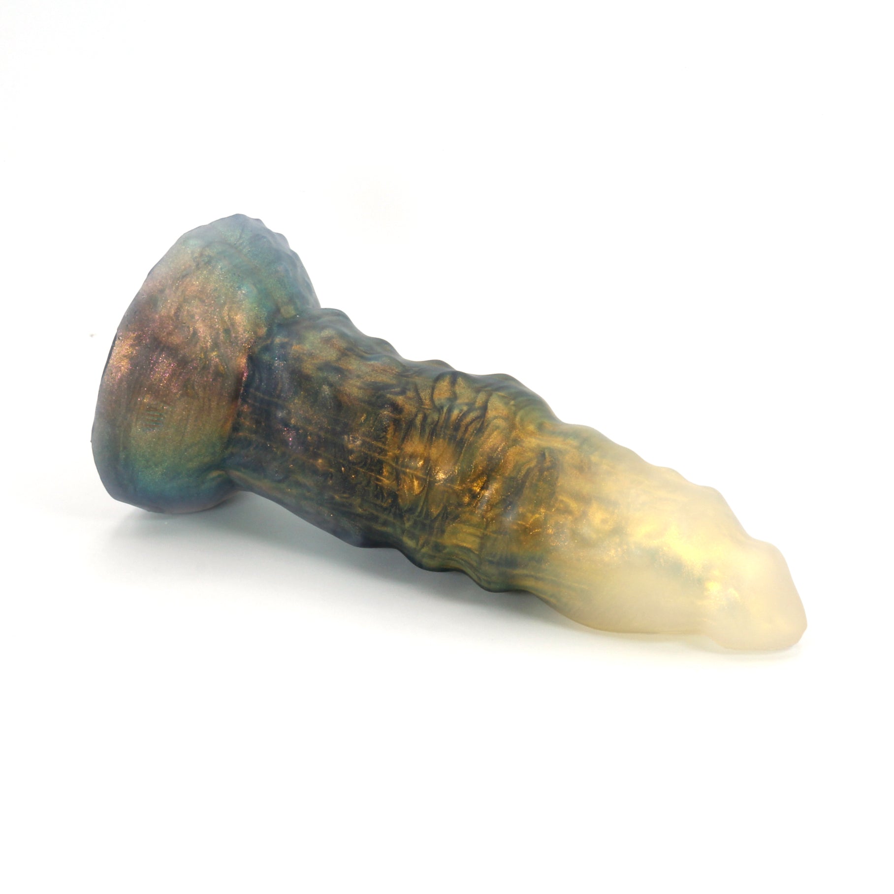 Please Note : This product is made with Near Clear Platinum Cure Silicone, there is an increased chance of bubble marks on the underside of the base, we do not consider this a flop and does not render the toy unsafe. Discoloration may be more obvious than standard Platinum Cure. Oil Based lubes and bodily fluids may stain, be sure to clean before and after every use with mild unscented soap.