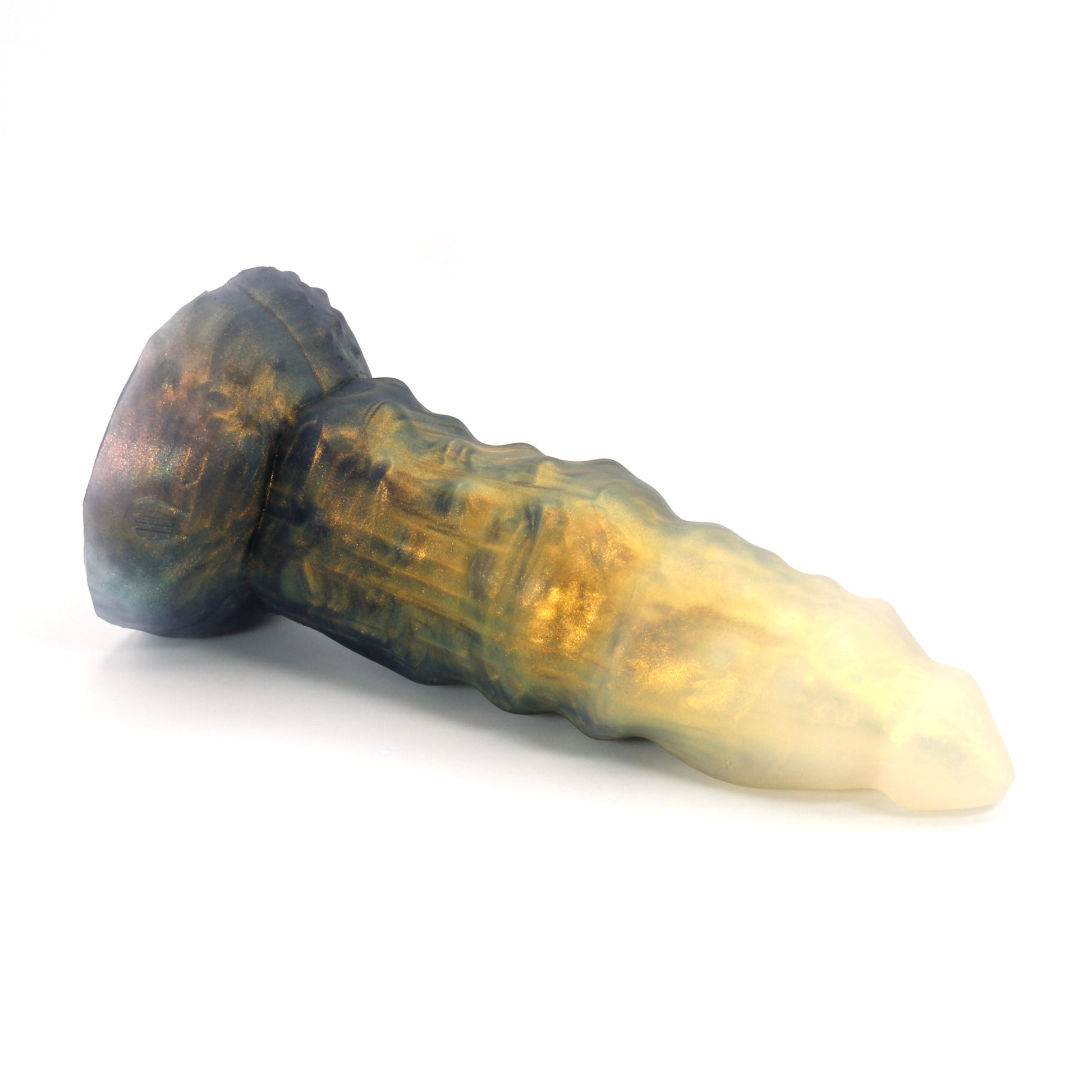 Please Note : This product is made with Near Clear Platinum Cure Silicone, there is an increased chance of bubble marks on the underside of the base, we do not consider this a flop and does not render the toy unsafe. Discoloration may be more obvious than standard Platinum Cure. Oil Based lubes and bodily fluids may stain, be sure to clean before and after every use with mild unscented soap.