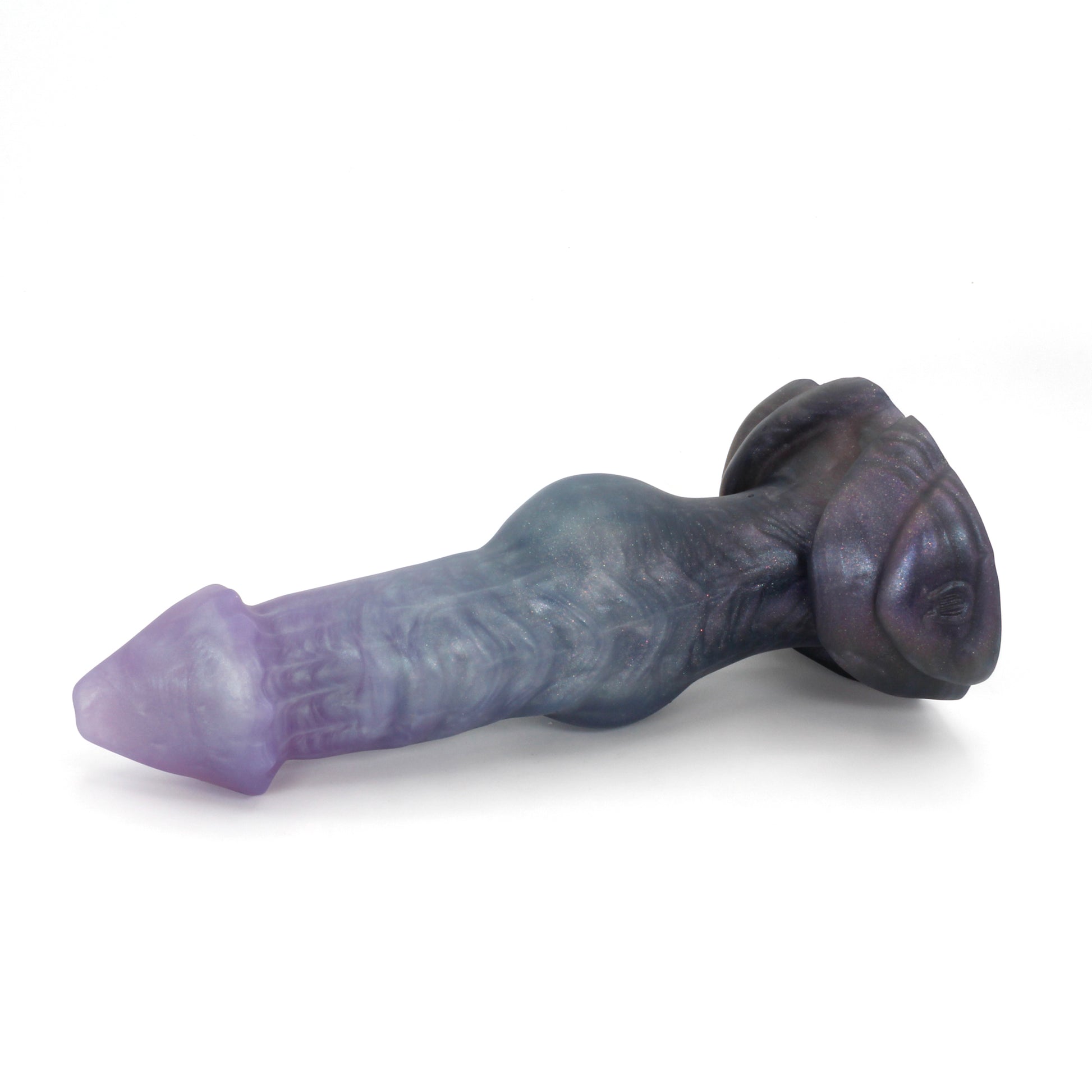 Please Note : This product is made with Near Clear Platinum Cure Silicone, there is an increased chance of bubble marks on the underside of the base, we do not consider this a flop and does not render the toy unsafe. Discoloration may be more obvious than standard Platinum Cure. Oil Based lubes and bodily fluids may stain, be sure to clean before and after every use with mild unscented soap.