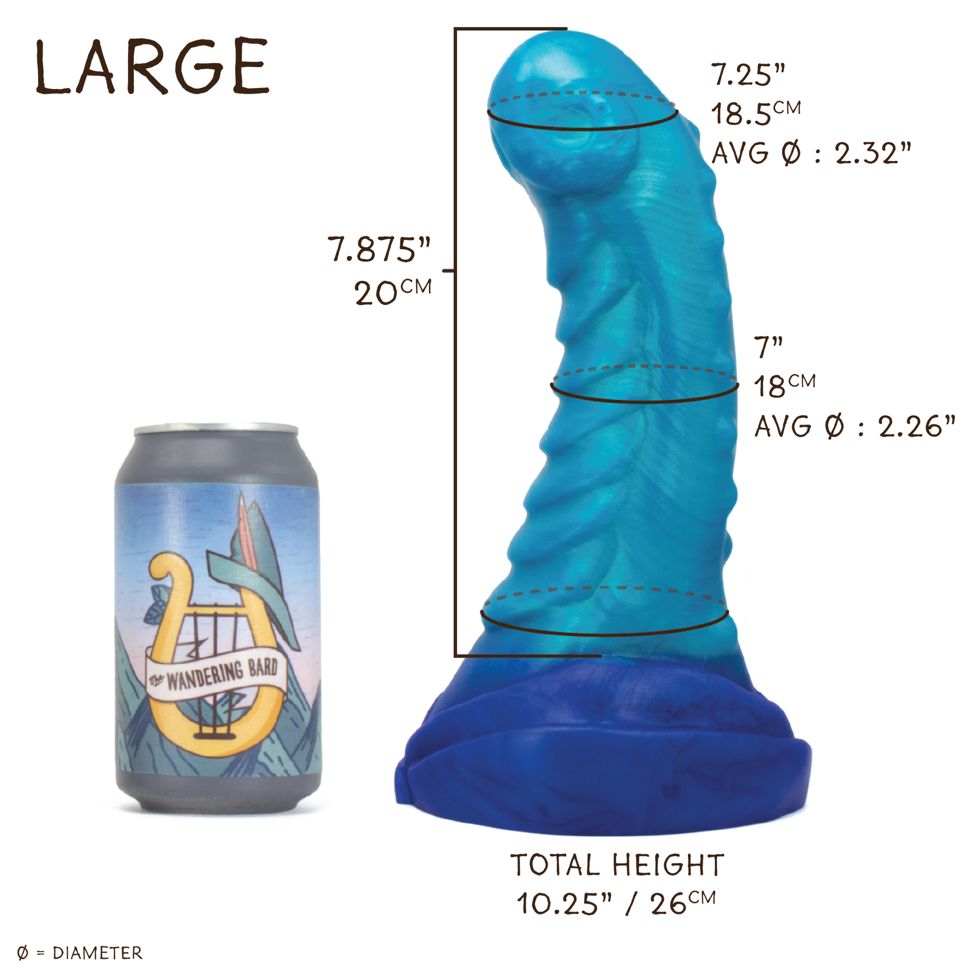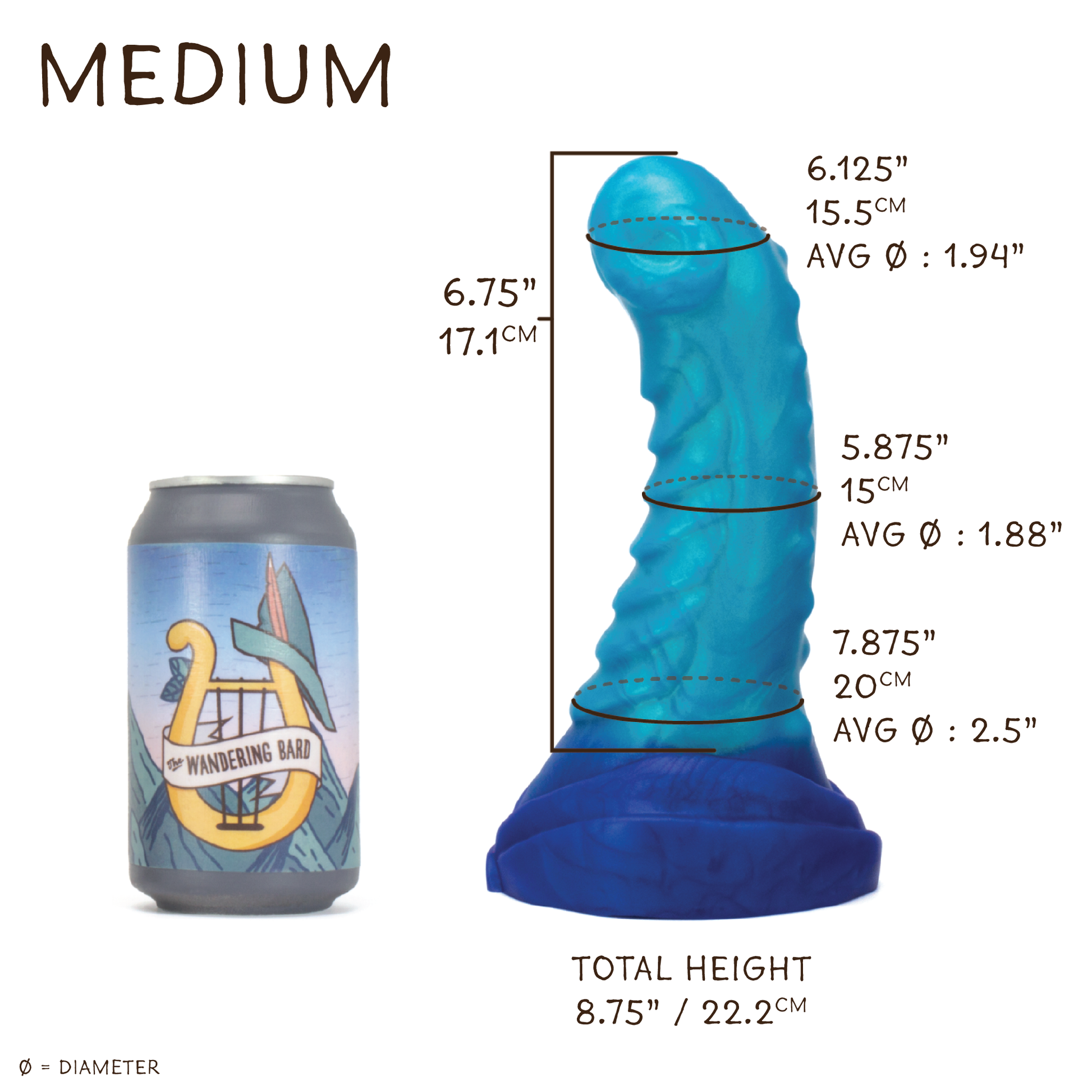 I kind of picked up basilisk on a whim, and I was not disappointed! I love the textured ridges on the front of the shaft, and it was a bit thicker than I expected it would be, but in a good way! I highly recommend it! You will never be disappointed with the customer service from Wandering Bards, incredible fast pour time and shipping!