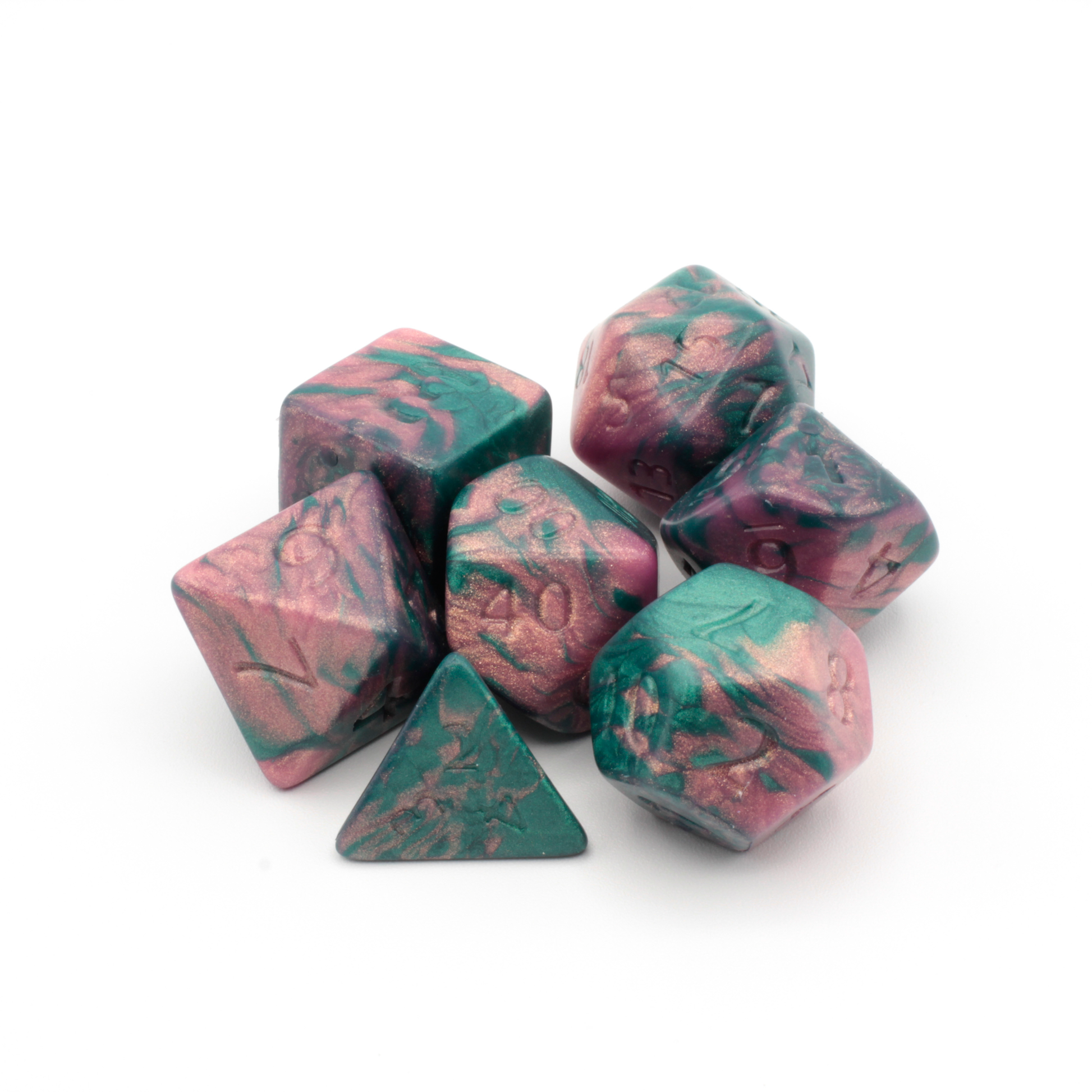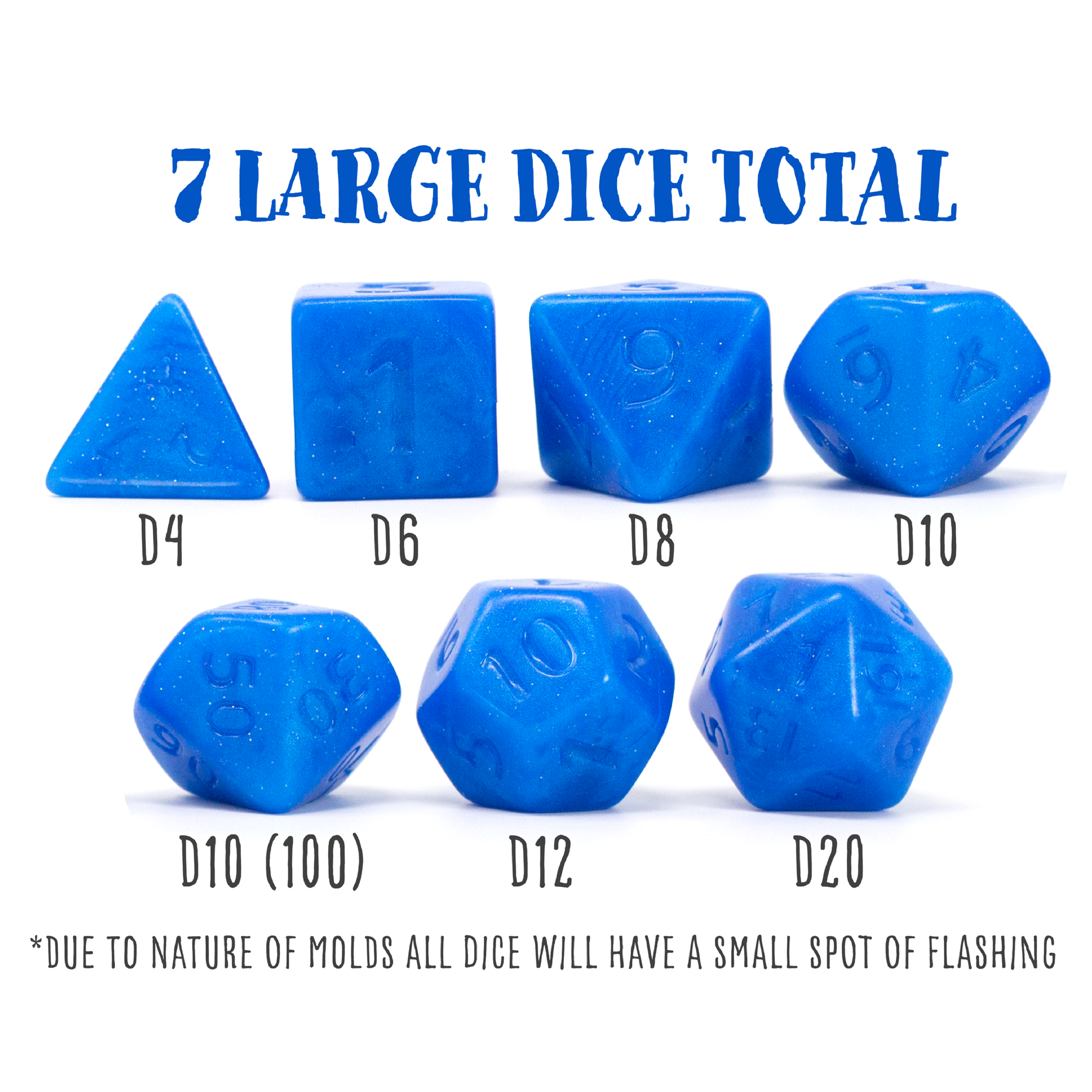 A 7 piece set of Large Squishy Silicone Dice in a Single or Marbled custom Color!