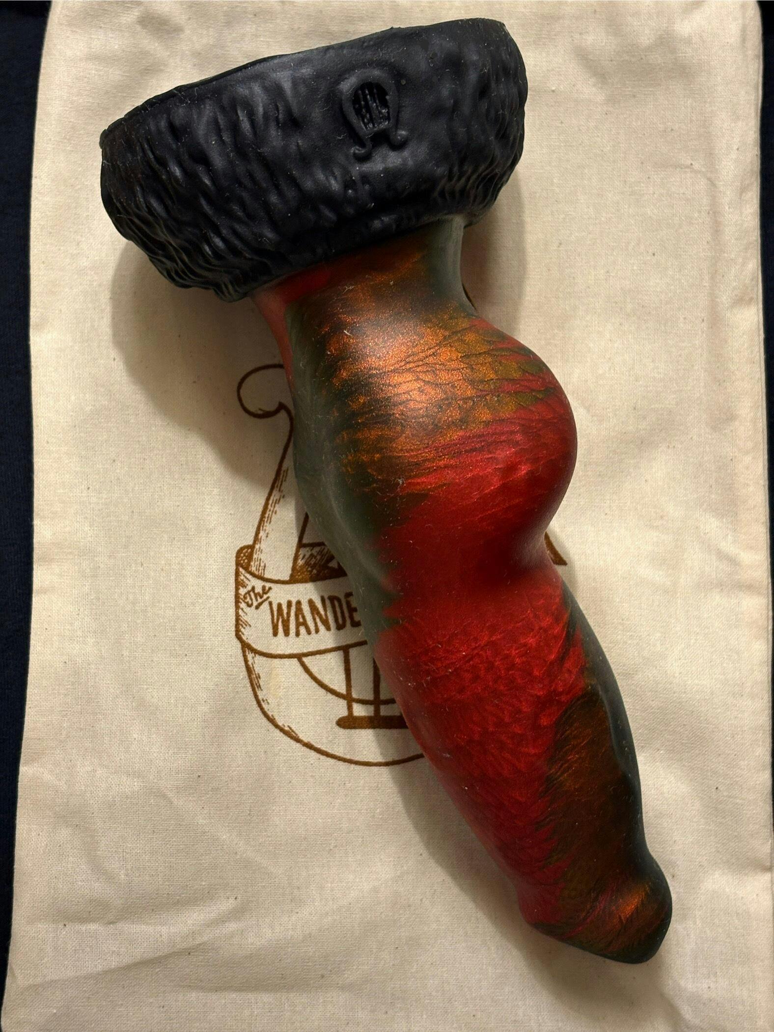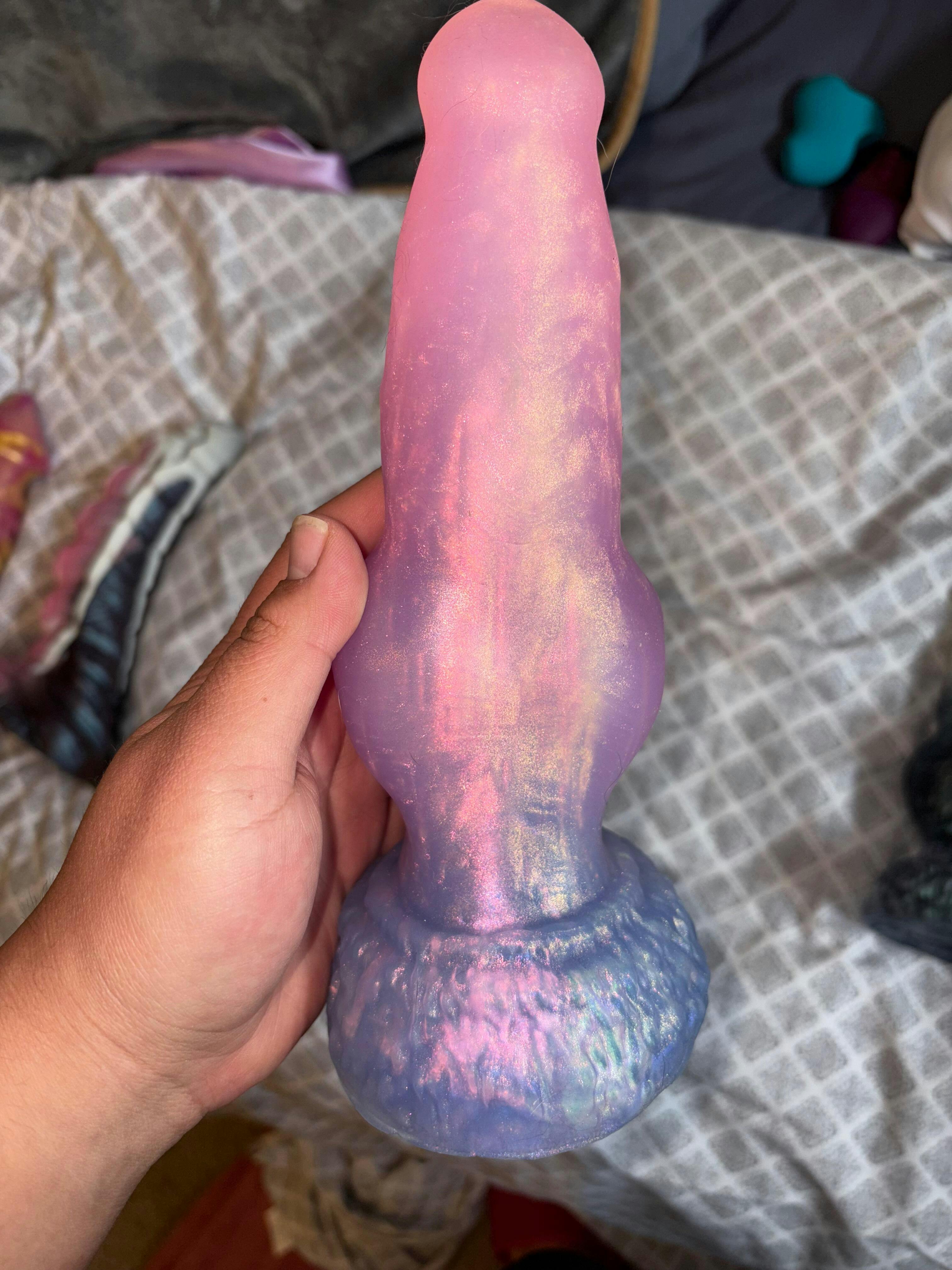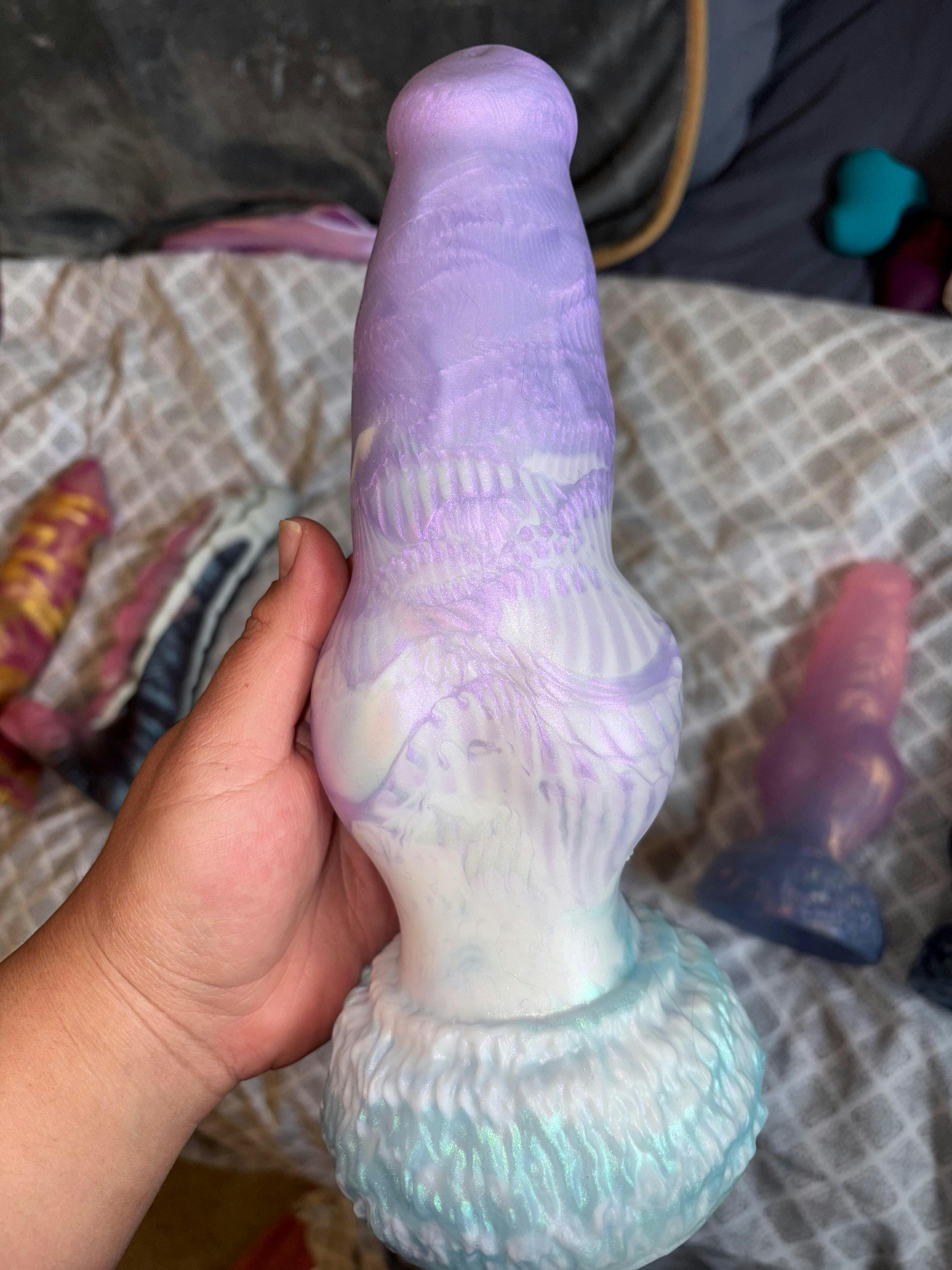This canine inspired dildo features a tapered & rounded flared tip, varying width shaft with a wide knot meeting a flared base.