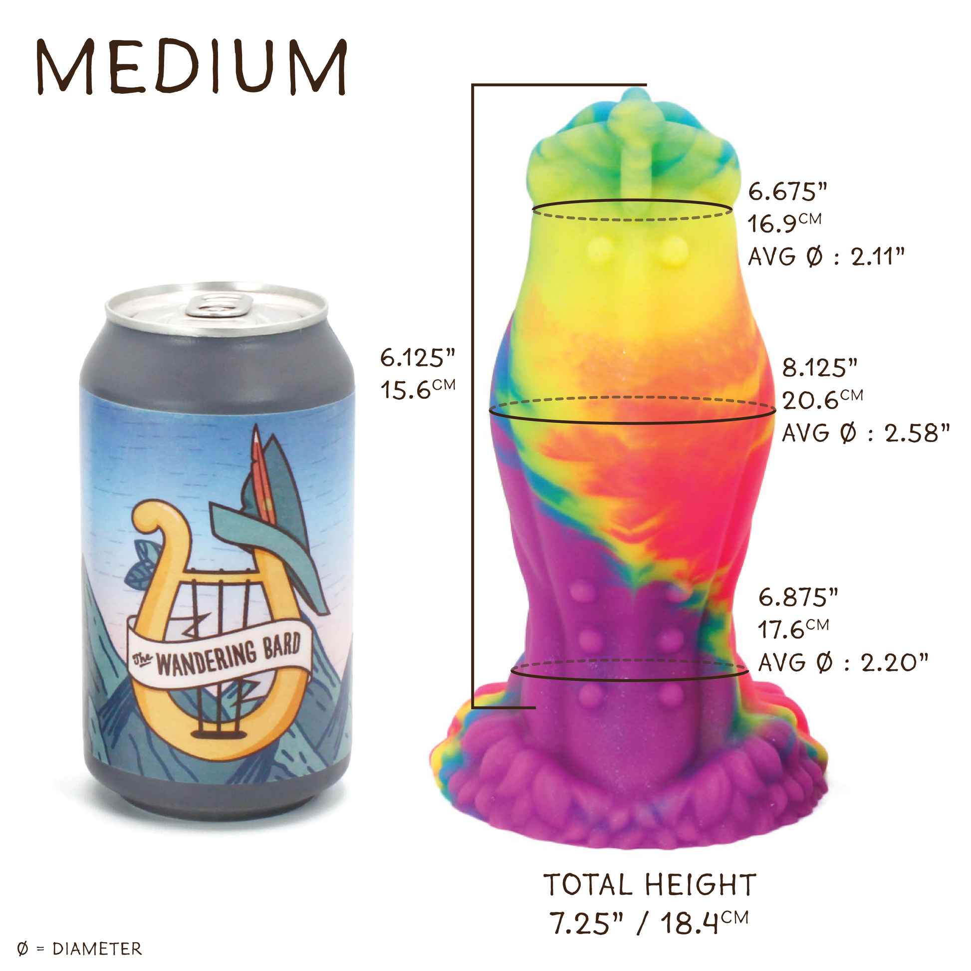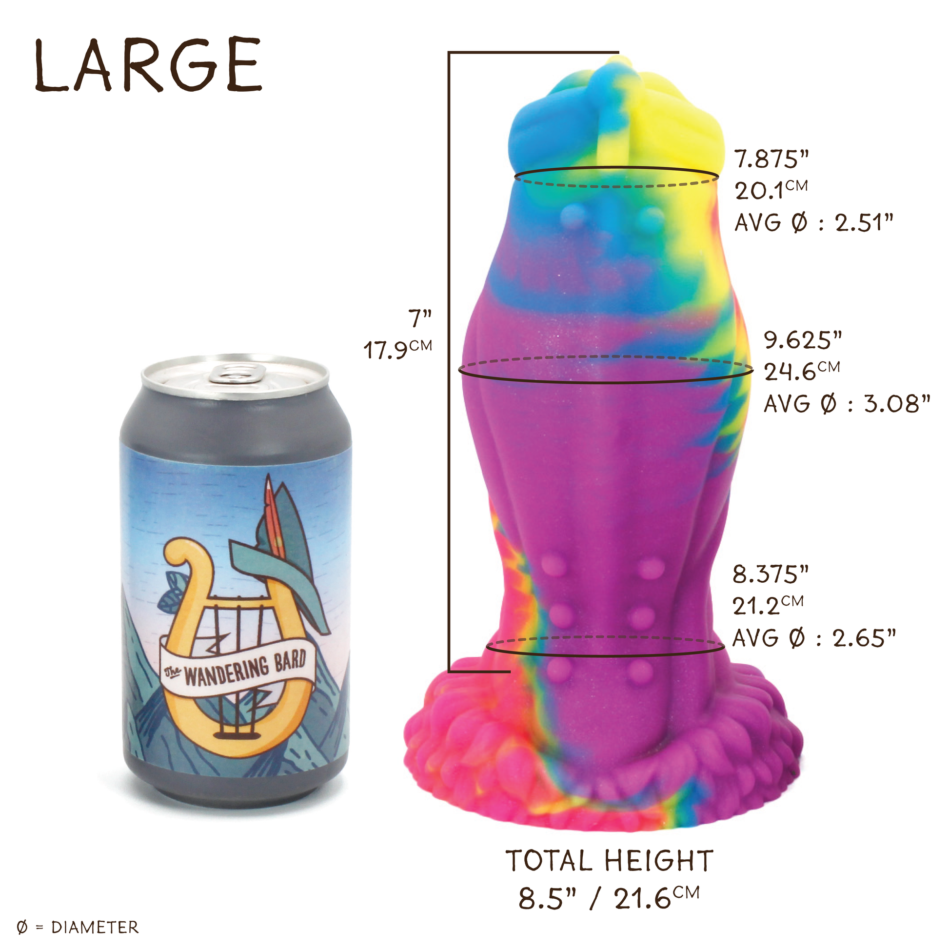 This toy is short and girthy for a very full feeling! Please note the thickness of this model will make the silicone feel firmer than normal.