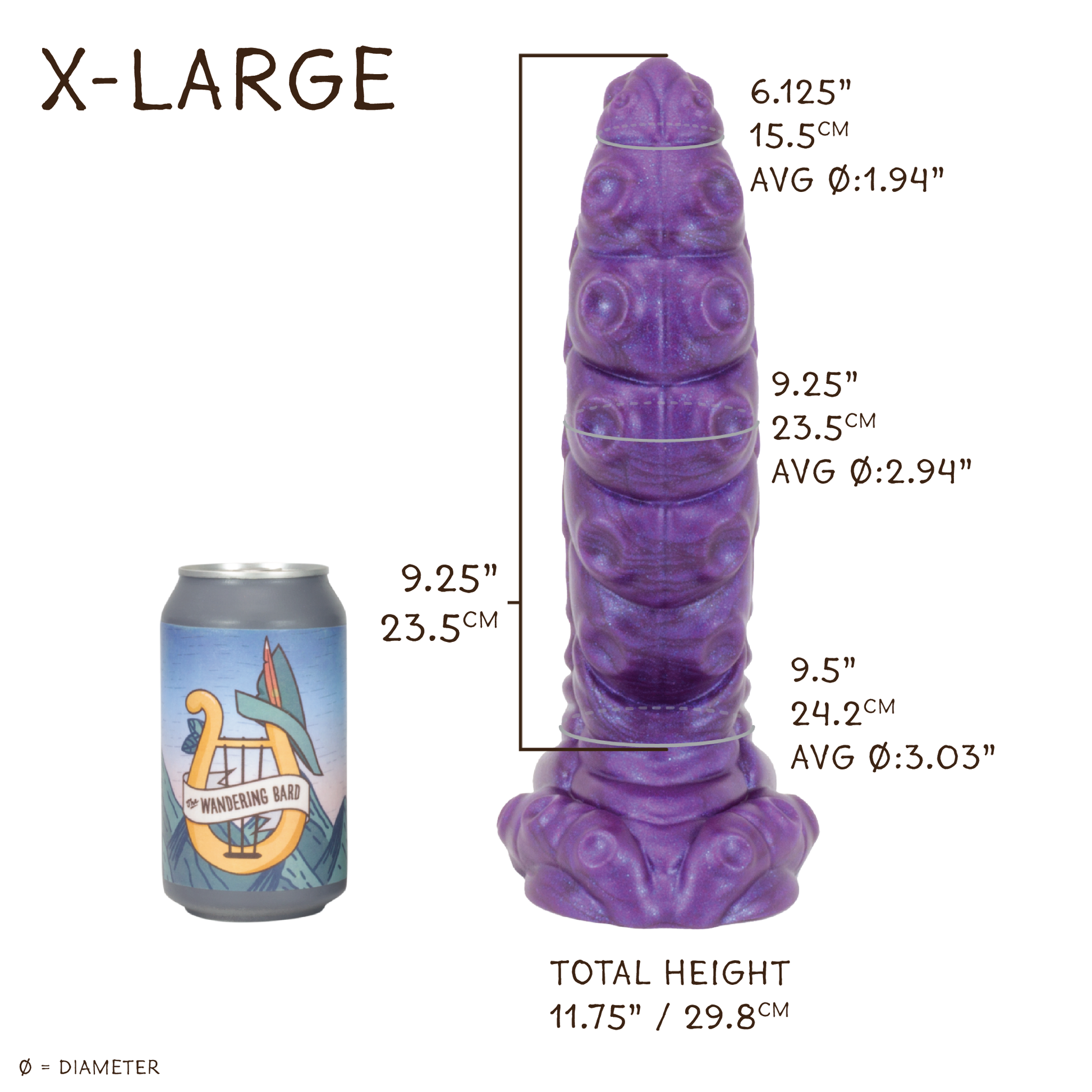 Head Base Circumference: 3.25" / 8.2cm ; Avg Diameter: 1.03"