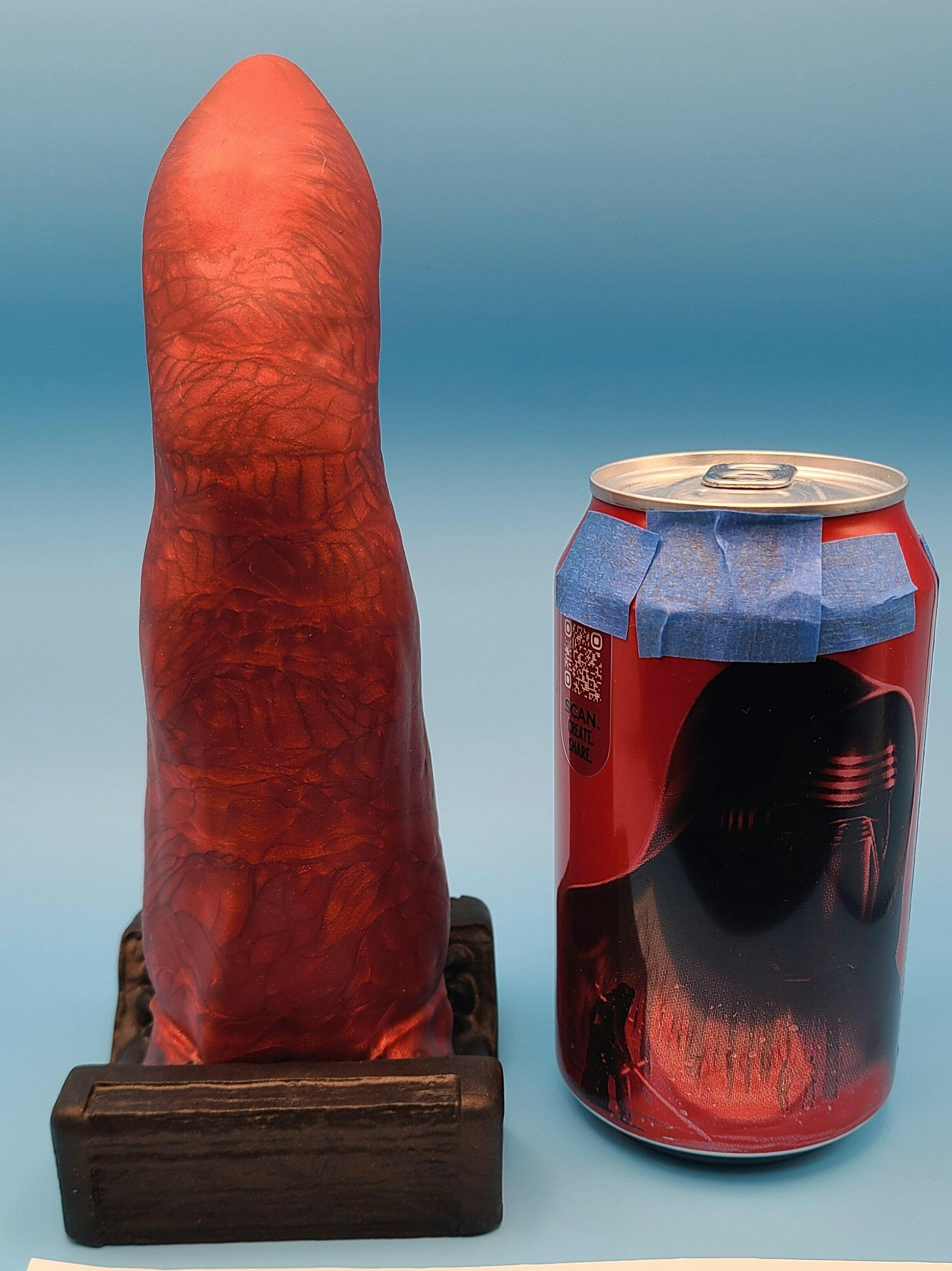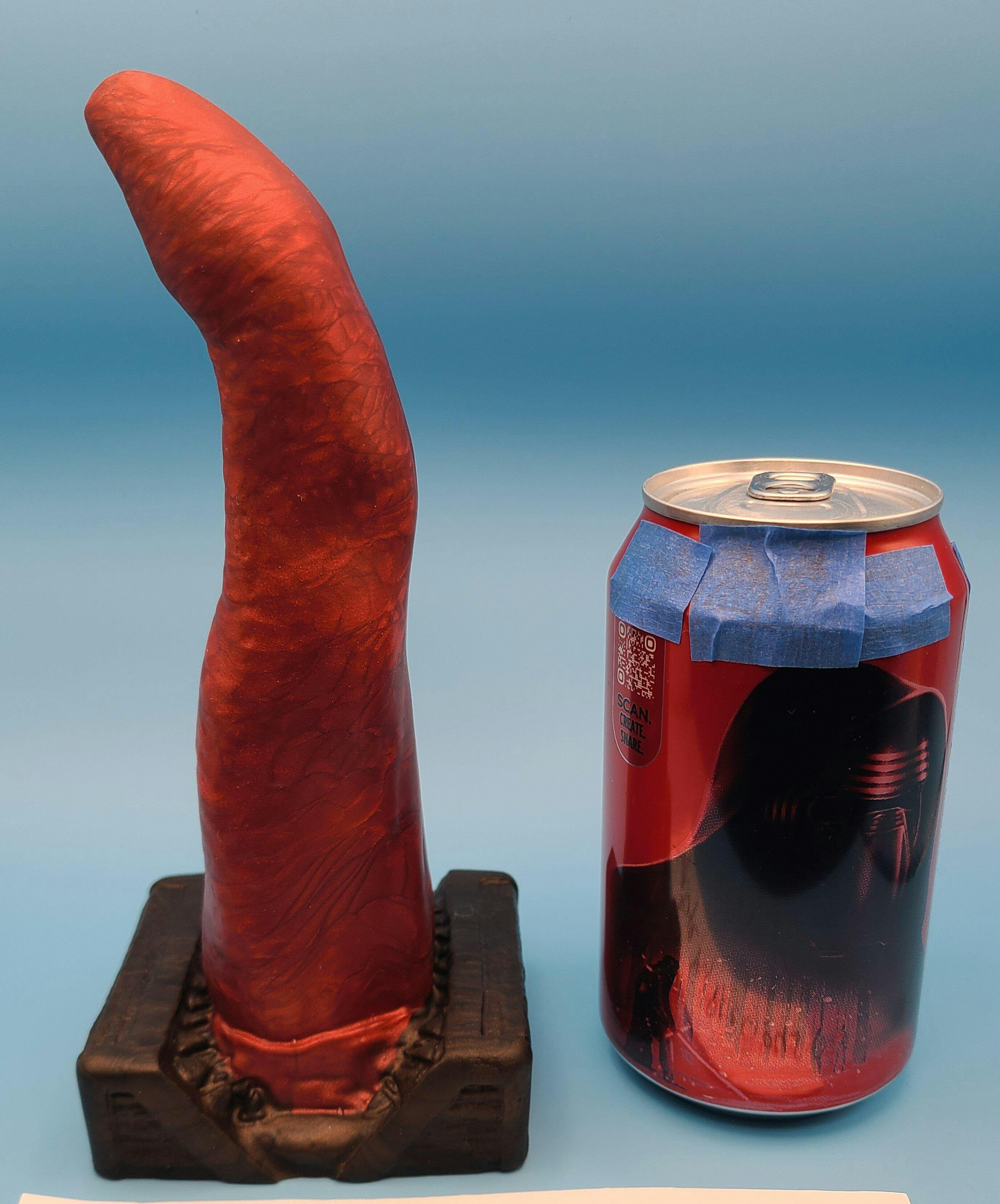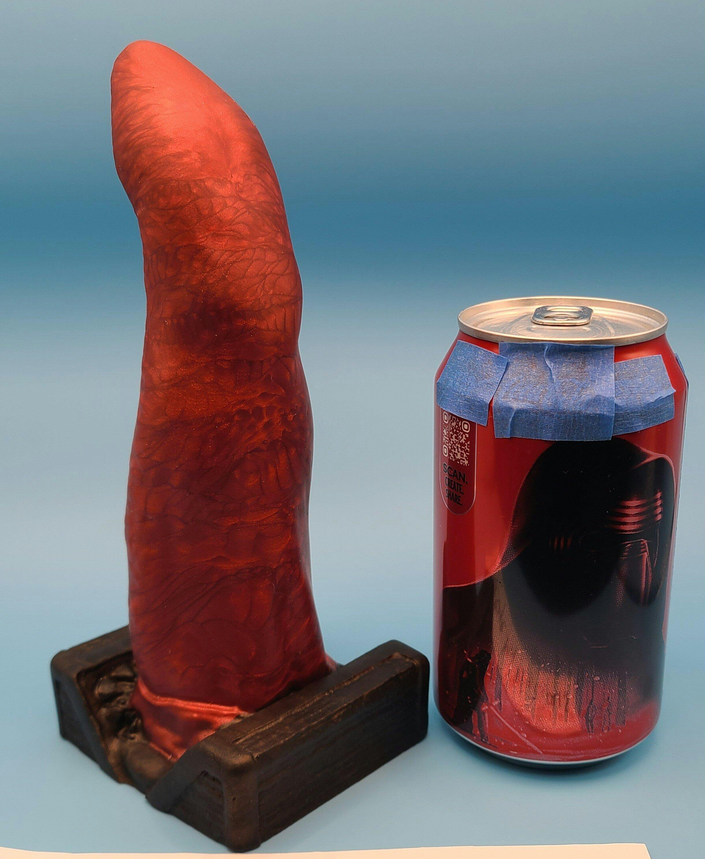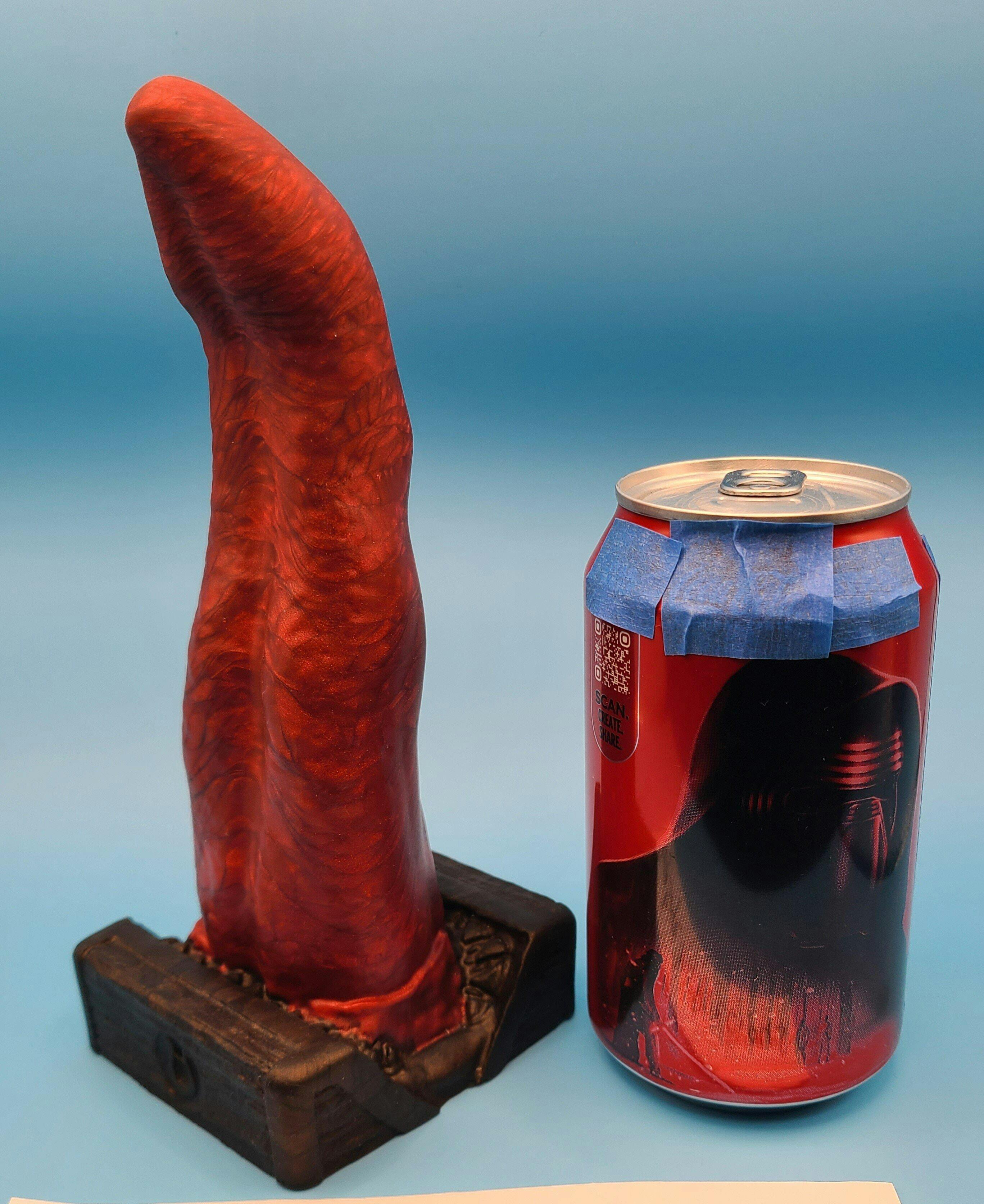 This monster tongue dildo features a thin rounded tip, angled shaft and flared base.