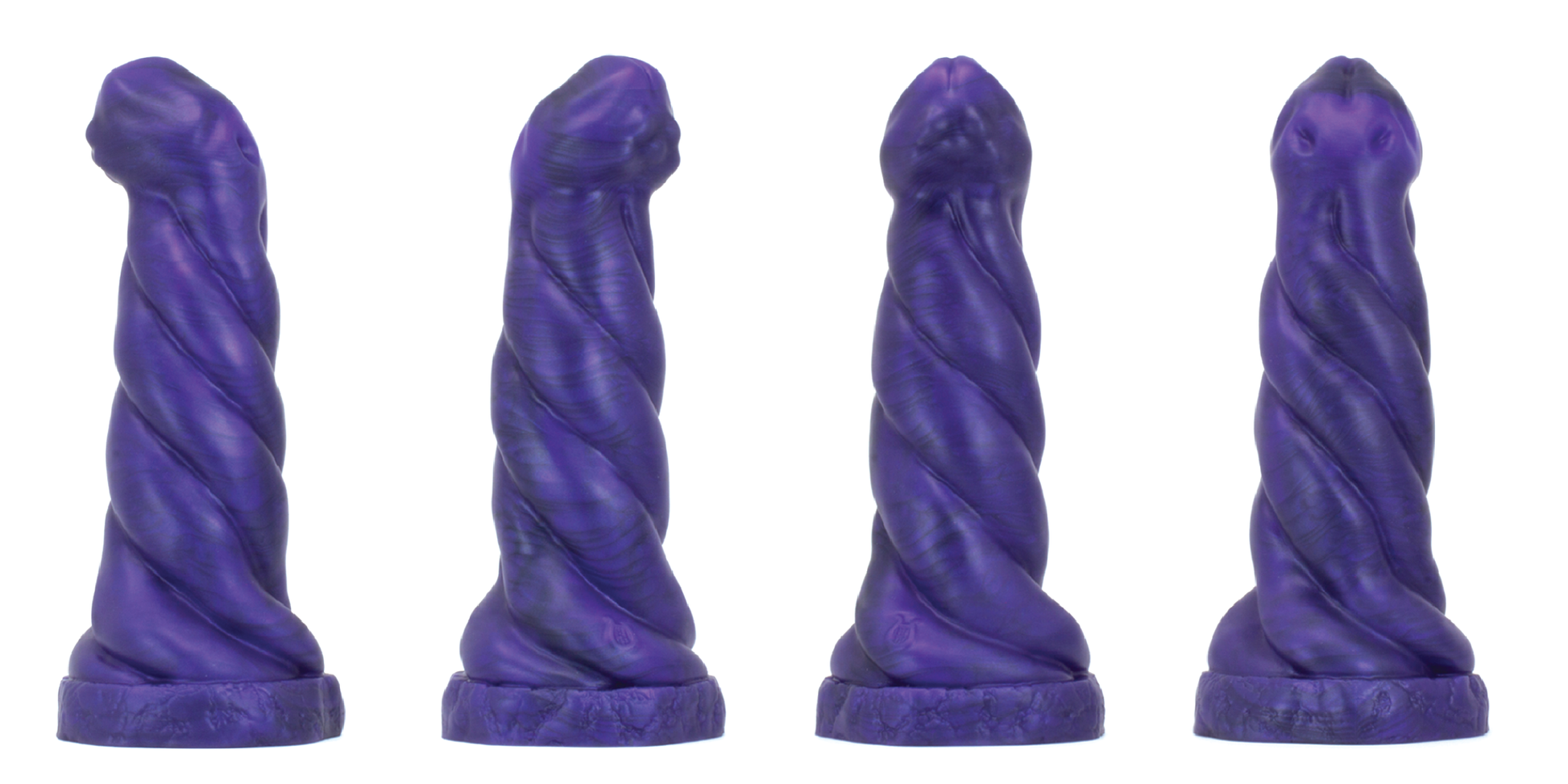 The model: Even in x-small, this guy has some nice length for specific spot stim. The nubs on the back of the head don't look like much but you can definitely feel them in medium firmness! And the sculpt on the twisted shaft has this really satisfying "hand sculpted" smoothness to it.. Idk how to describe it, but it has this.. "organic-ness" that really makes it look and feel like a proper Sculpture. If that makes sense.
