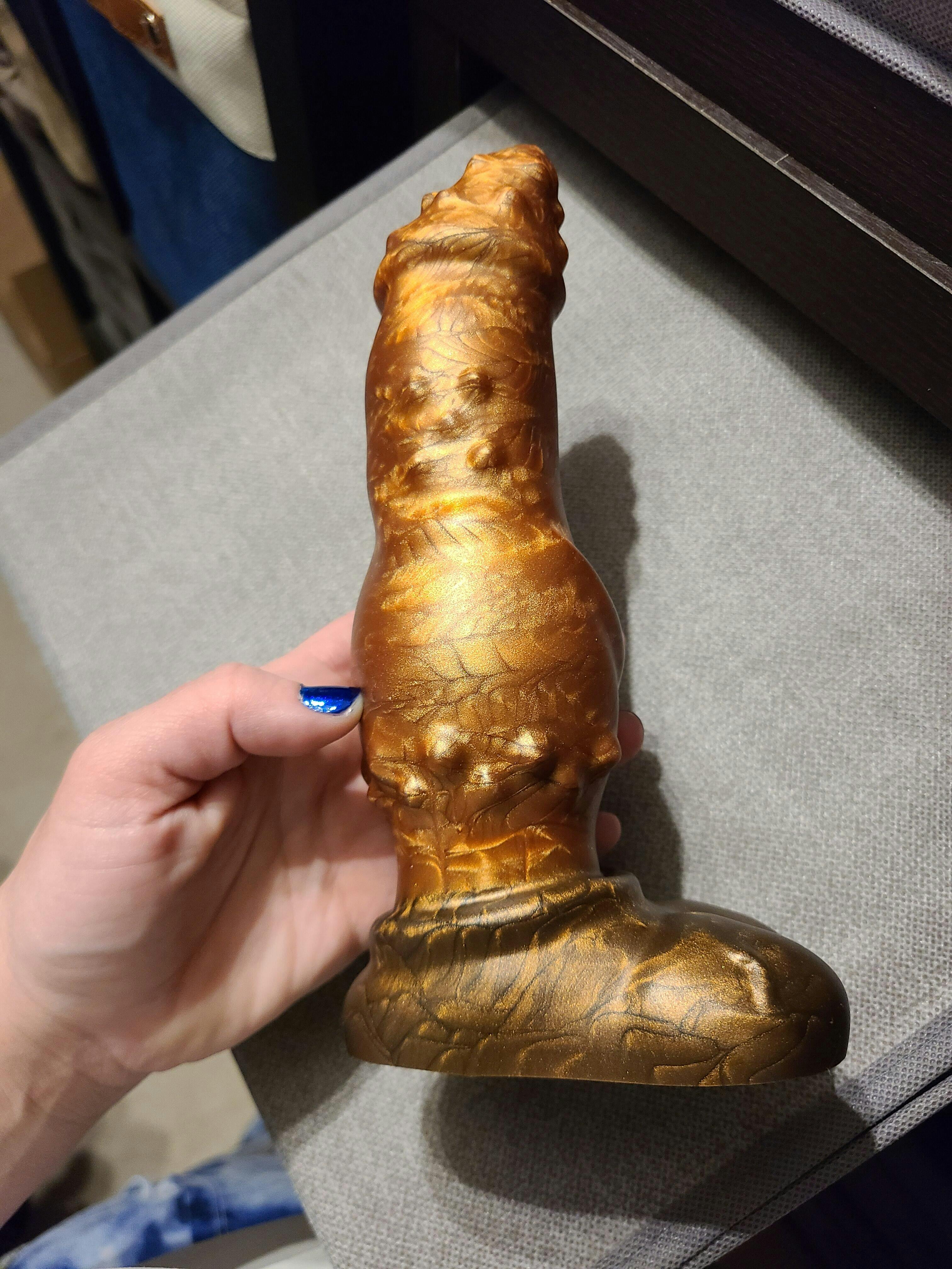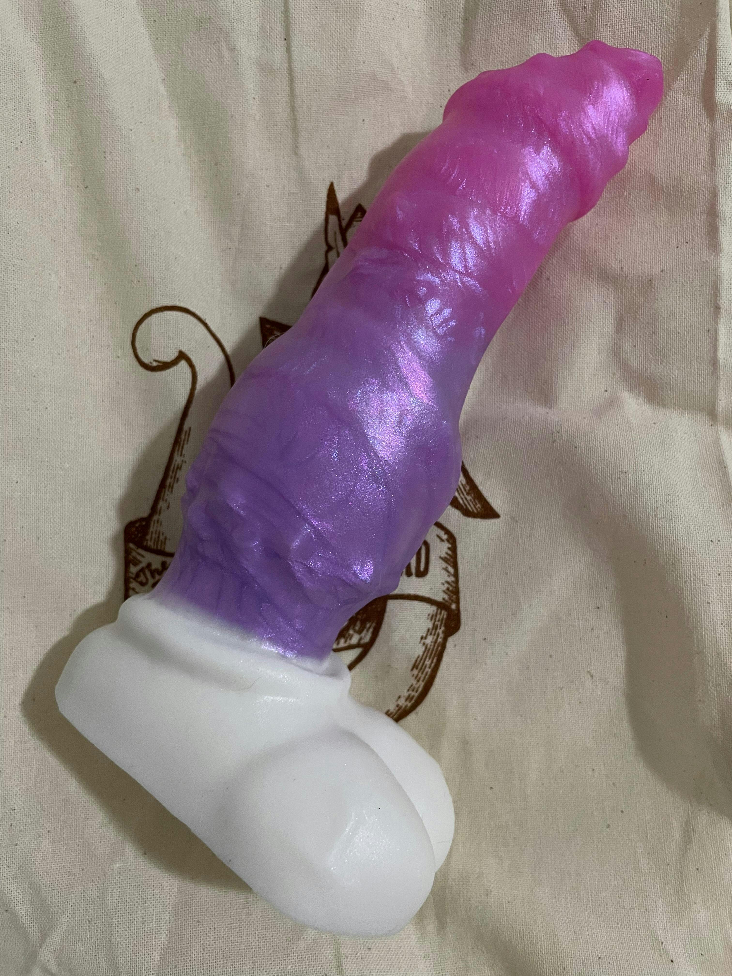 This feline dildo features a Thin tapered & angled tip, straight shaft and gentle knot all loaded with lots of bumpy textured leading down to a flared base.